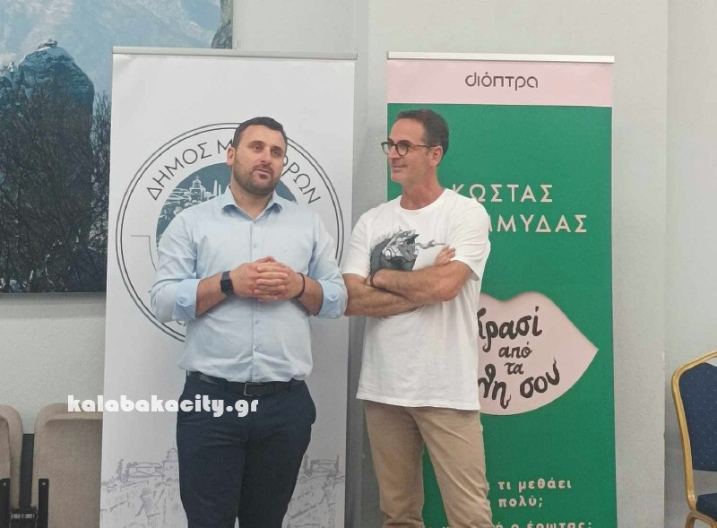 Στην αίθουσα “Νίτσα Λιάπη” στην Καλαμπάκα έγινε σήμερα η παρουσίαση του βιβλίου του νέου βιβλίου του Κώστα Κρομμύδα “Κρασί από τα χείλη σου”.