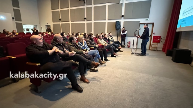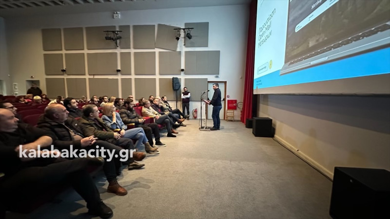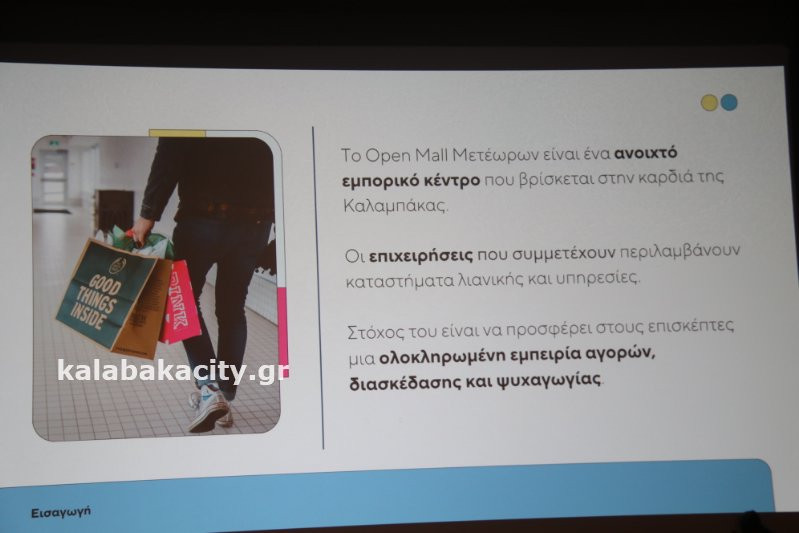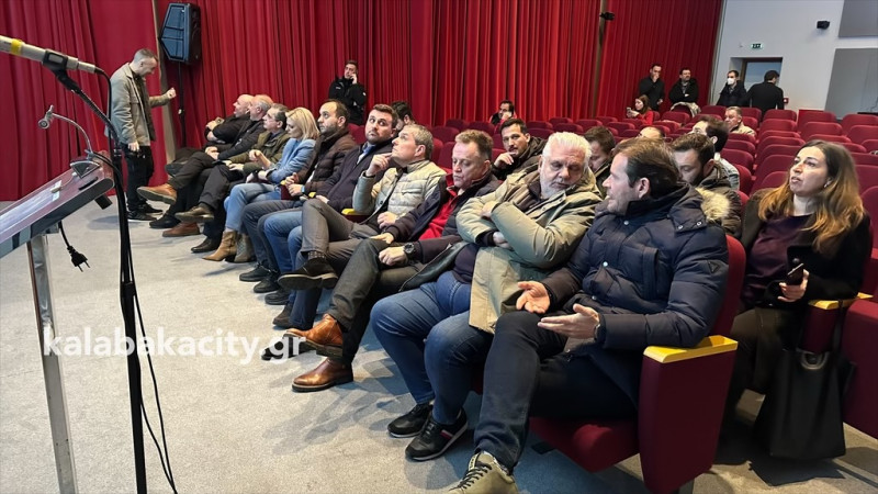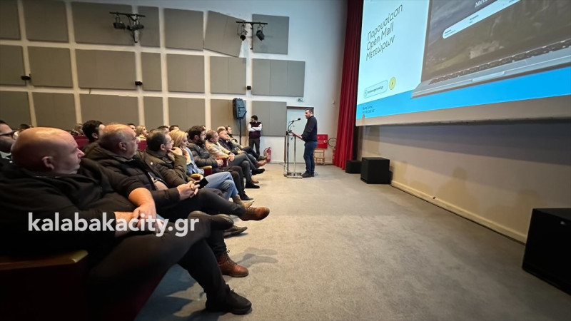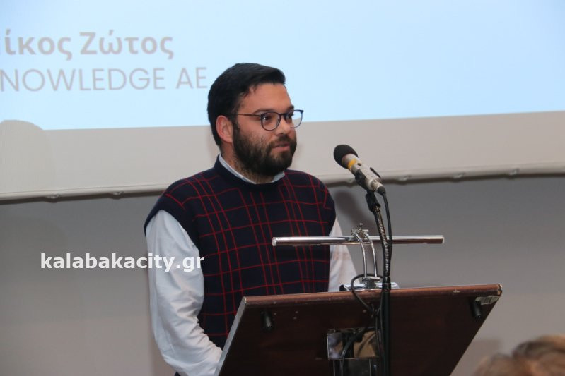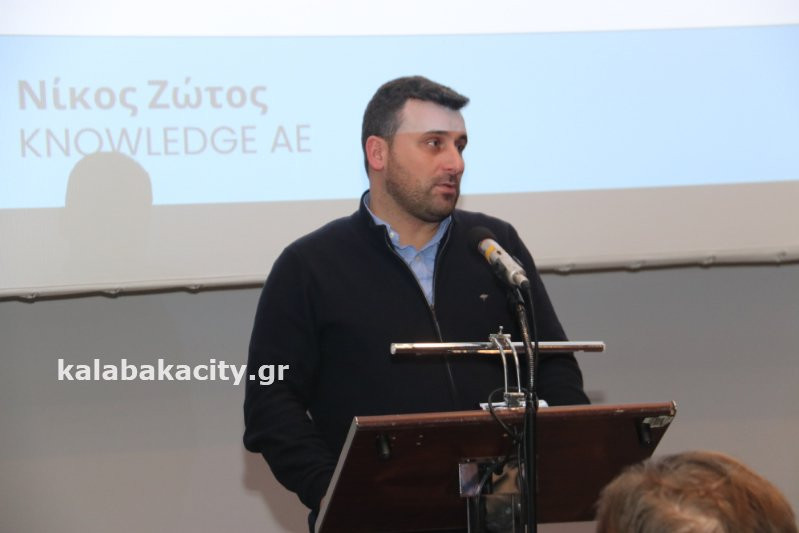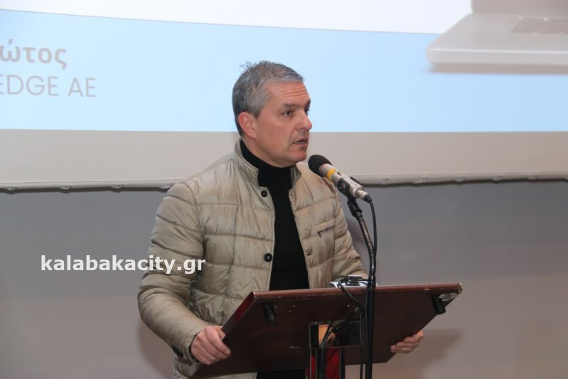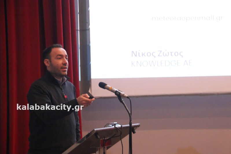 Την εκδήλωση χαιρέτησαν ο Δήμαρχος Δ. Μετεώρων κ. Αβραμόπουλος, ο πρόεδρος του Επιμελητηρίου κ. Παπαευθυμίου, ο πρόεδρος του Εμπορικού Συλλόγου Καλαμπάκας κ. Αθανασούλας και στην συνέχεια ο κ. Νίκος Ζώτος ο υπεύθυνος του Εμπορικού Τμήματος της Knowledge AE, έκανε την παρουσίαση του έργου.