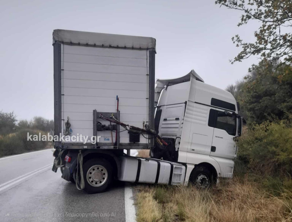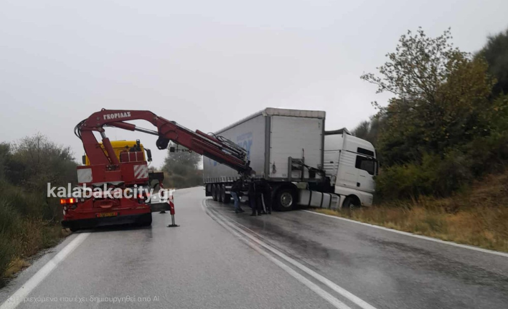 Εκτός δρόμου βρέθηκε σήμερα το απόγευμα νταλίκα στην ε.ο Τρικάλων – Ιωαννίνων λίγο πιο πάνω από την Μεγάλη Κερασιά προς Ορθοβούνι, λίγη ώρα μετά από την εκτροπή άλλου οχήματος για το οποίο είχαμε γράψει σχετικά.