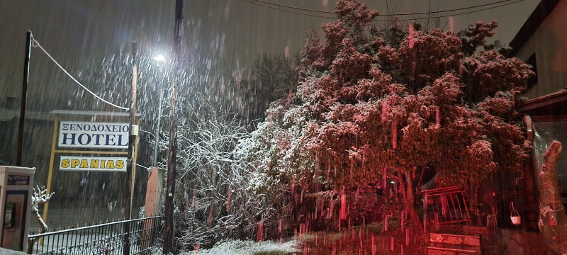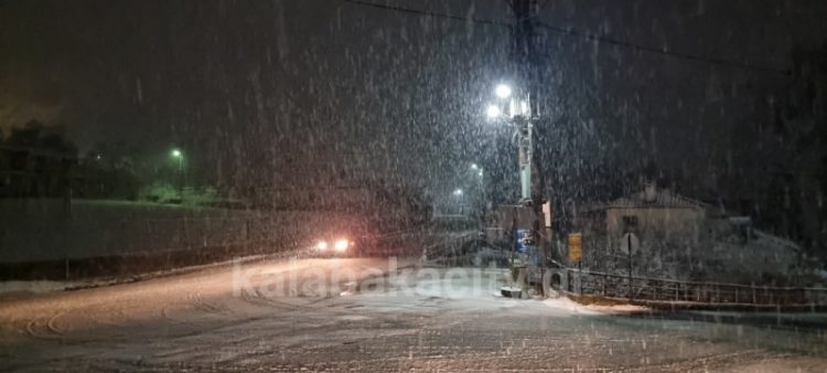 Έντονη χιονόπτωση παρατηρείται τις τελευταίες ώρες στο διοικητικό κέντρο του Δήμου Μετεώρων, αλλά και στην ευρύτερη περιοχή.