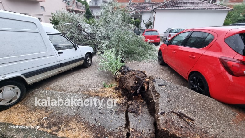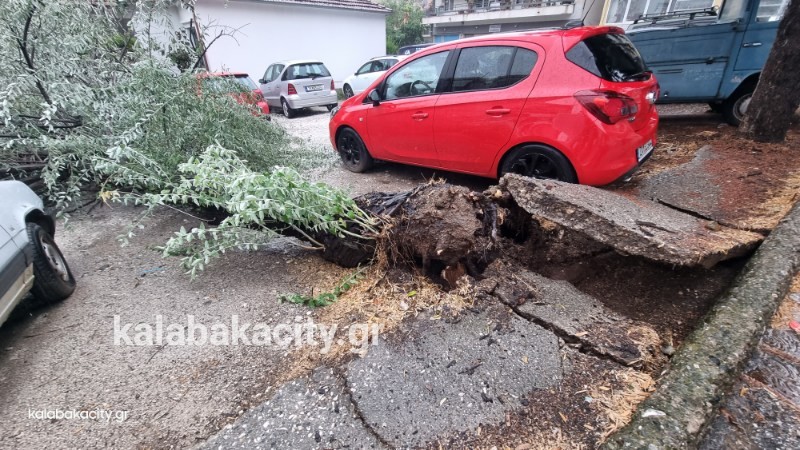 Το δέντρο ( ιτιά ) ξεριζώθηκε και ευτυχώς δεν έπεσε σε κάποιο σταθμευμένο όχημα ώστε να προκληθούν ζημιές!