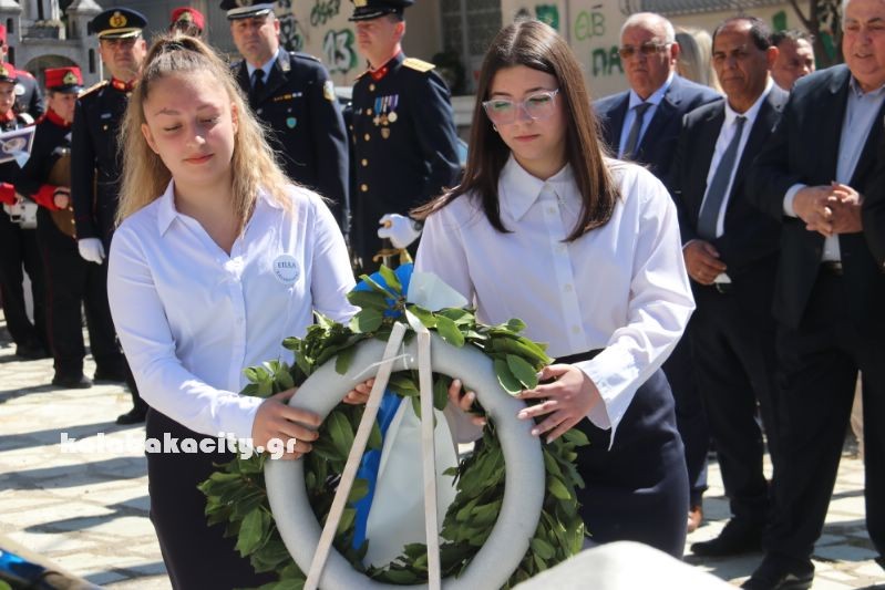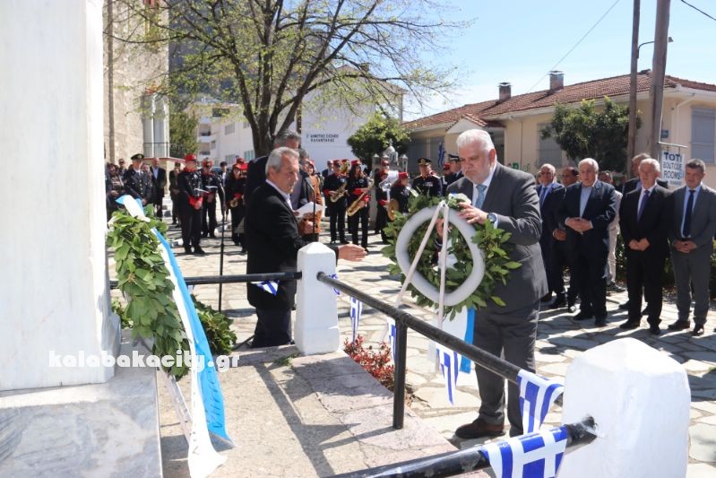 Επιμνημόσυνη δέηση από από τον Πρωτοσύγγελο της Ι.Μ Σταγών και Μετεώρων Αρχιμανδρίτη Νήφωνα Καψάλη και κατάθεση στεφάνων στο Ηρώο των Πεσόντων ακολούθησε αμέσως μετά από την επίσημη δοξολογία στον Ιερό Μητροπολιτκό Ναό του Αγίου Βησσαρίωνος.