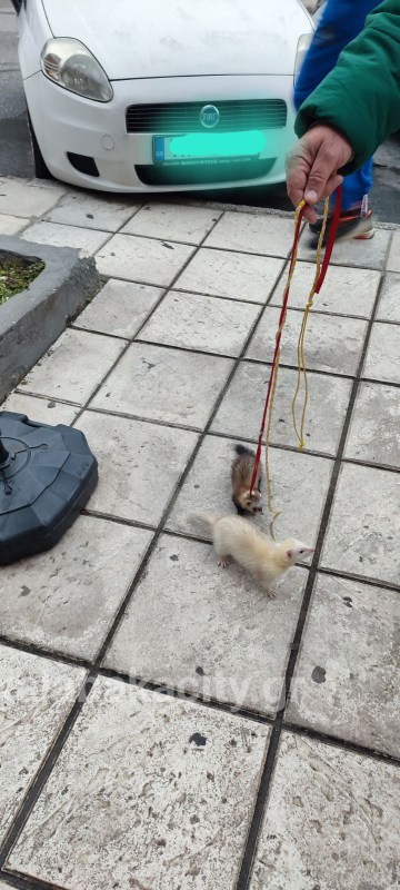 Επισκέπτης στην περιοχή μας έβγαλε βόλτα τα κατοικίδια του κουνάβια… και όπως ήταν αναμενόμενο τράβηξε τα βλέμματα περαστικών και θαμώνων καταστημάτων…. !