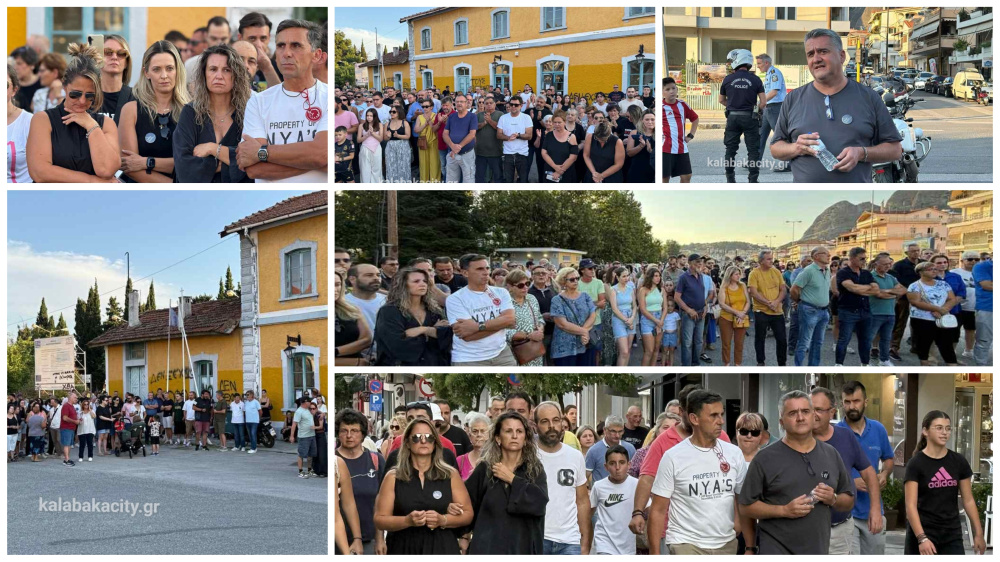 Συγκέντρωση μνήμης και διαμαρτυρίας πραγματοποιήθηκε σήμερα, Σάββατο 6 Σεπτεμβρίου το απόγευμα, στην Καλαμπάκα για τα θύματα του σιδηροδρομικού δυστυχήματος στα Τέμπη.