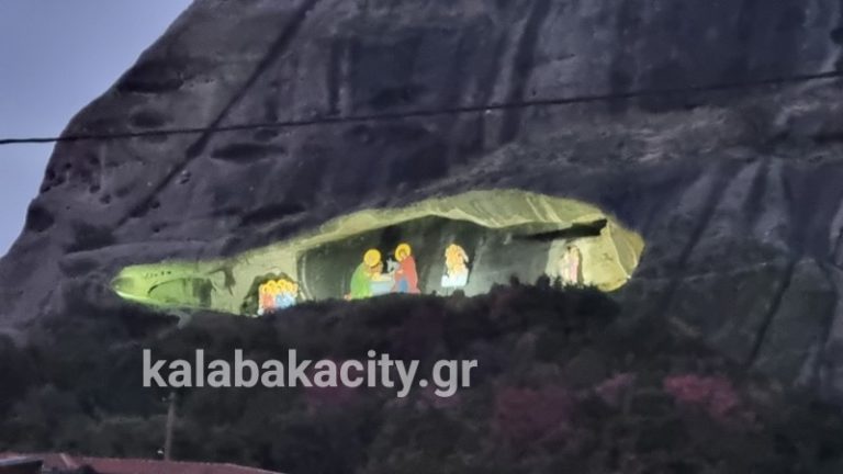 Καλαμπάκα: Φωταγωγήθηκε η Χριστουγεννιάτικη φάτνη σε σπηλιά των Μετεώρων