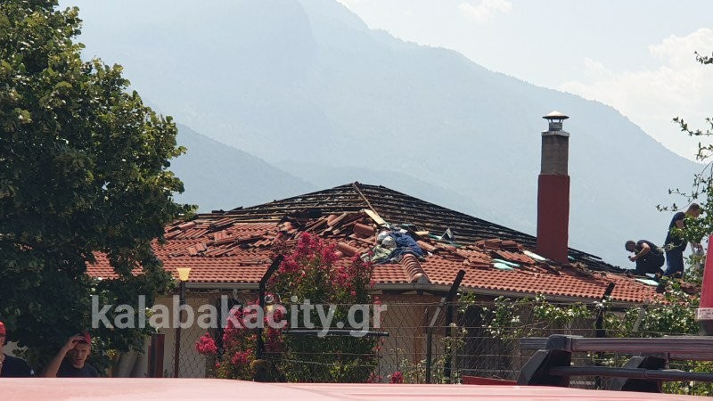 Από την φωτιά σημειώθηκαν ζημιές στην στέγη και στο εσωτεικό του σπιτιού.