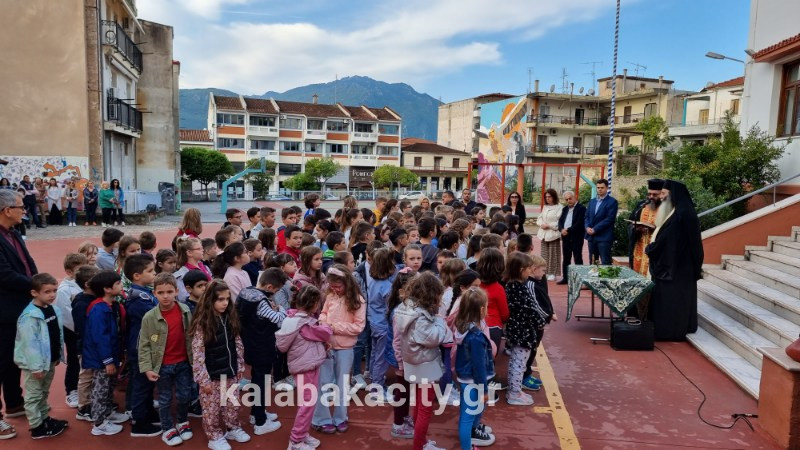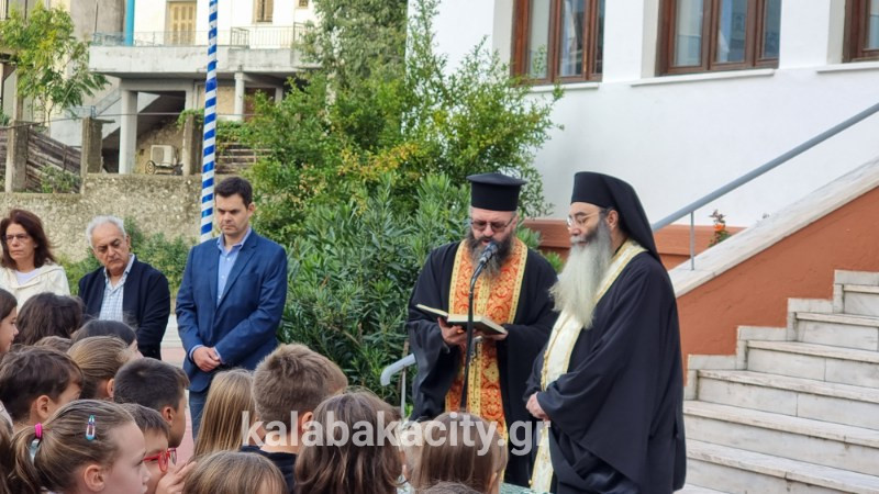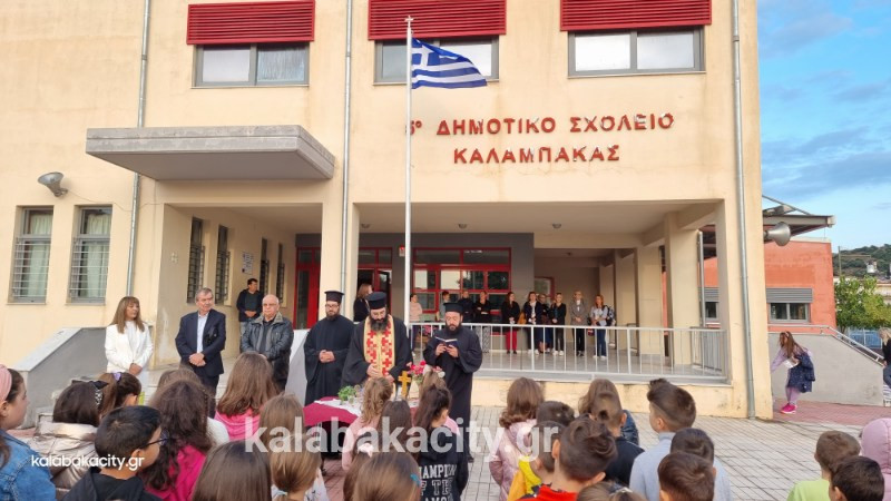 Στα σχολεία τους πήγαν οι μαθητές της Καλαμπάκας σήμερα το πρωί για τον καθιερωμένο αγιασμό, για την επίσημη έναρξη της σχολικής χρονιάς η οποία άργησε λόγω της κακοκαιρίας.