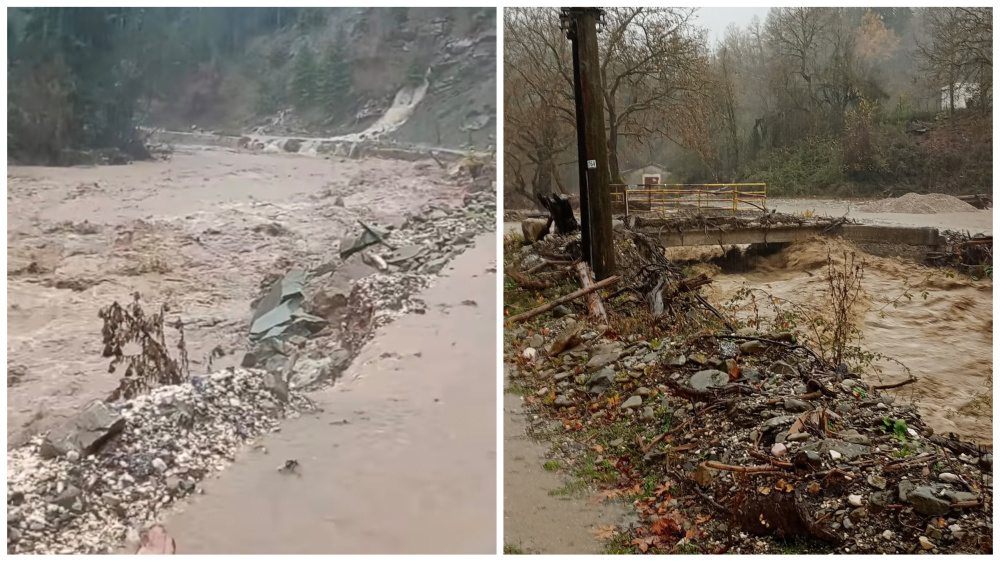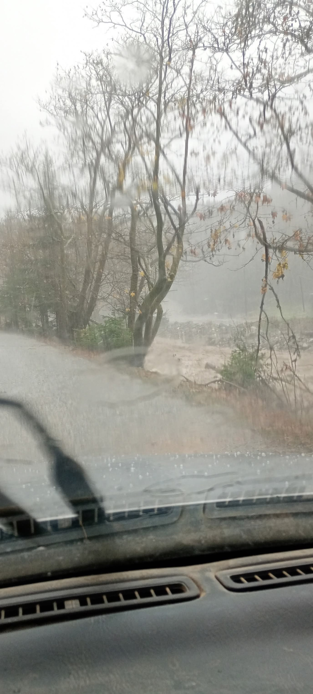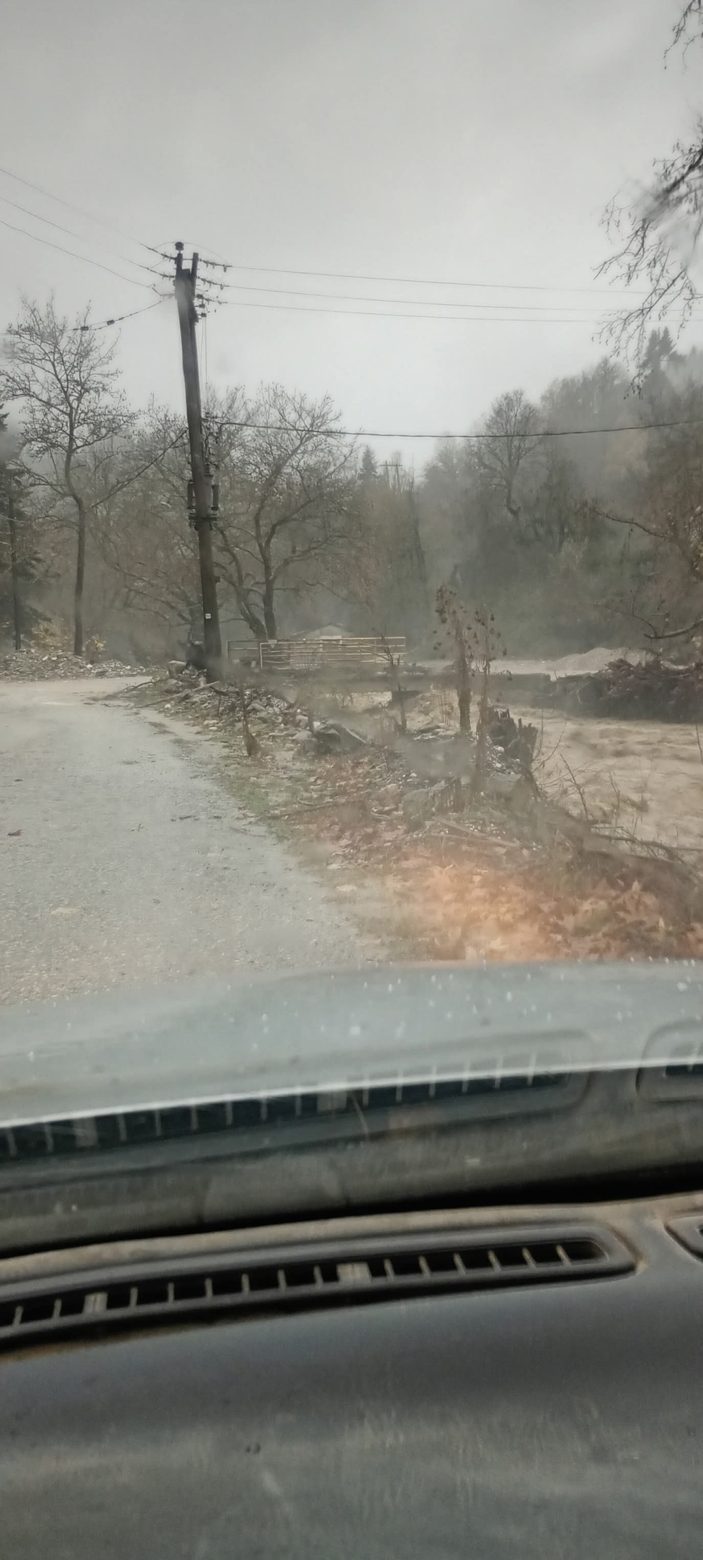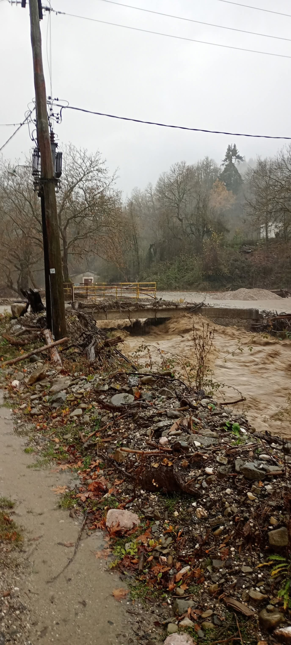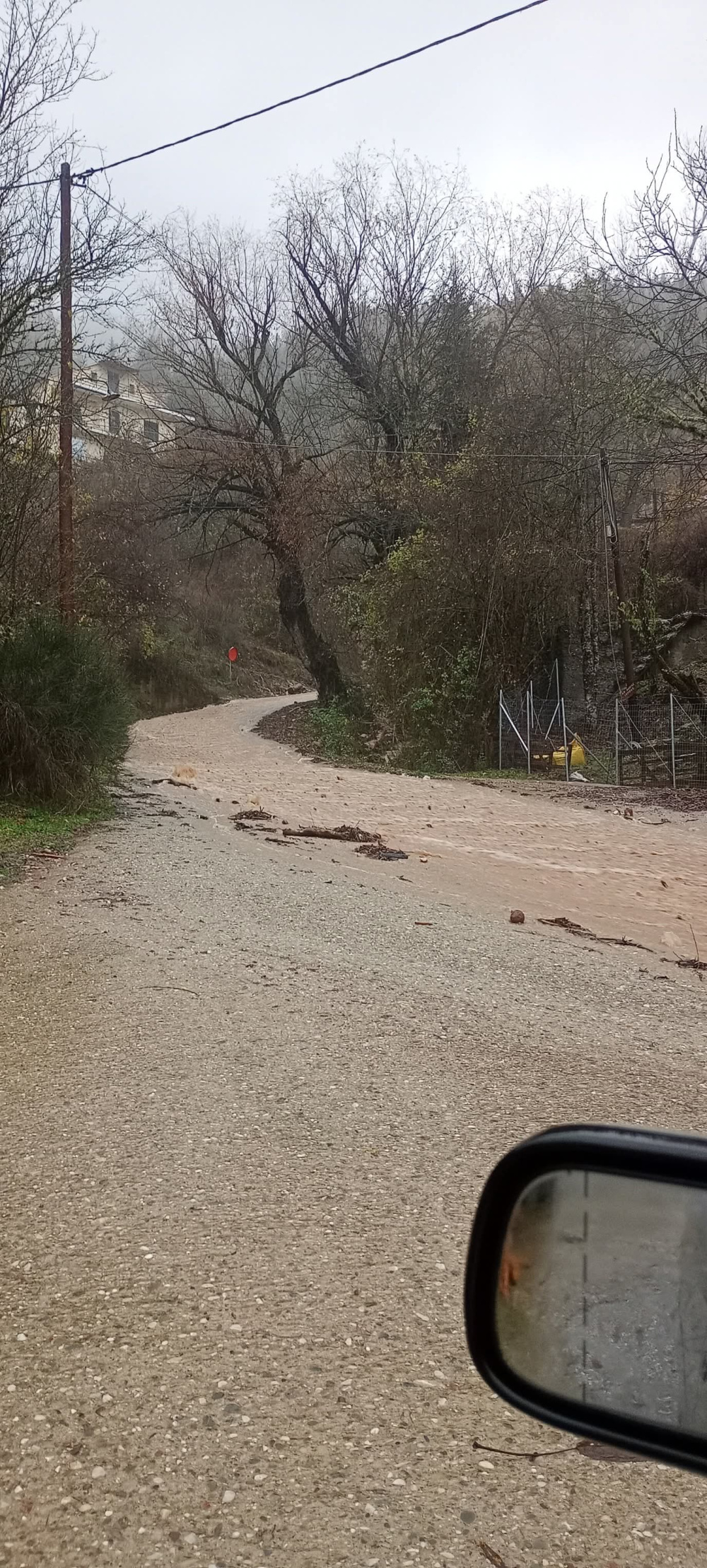Πιο κάτω ο δρόμος έκλεισε από βράχους και μετά τον Νταμάτη προς τη διασταύρωση της Κρανιάς το ποτάμι βγήκε στο δρόμο.