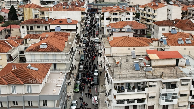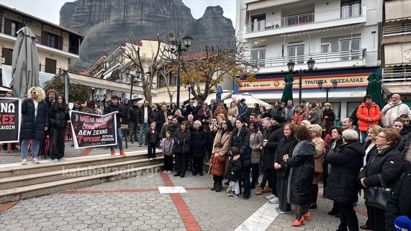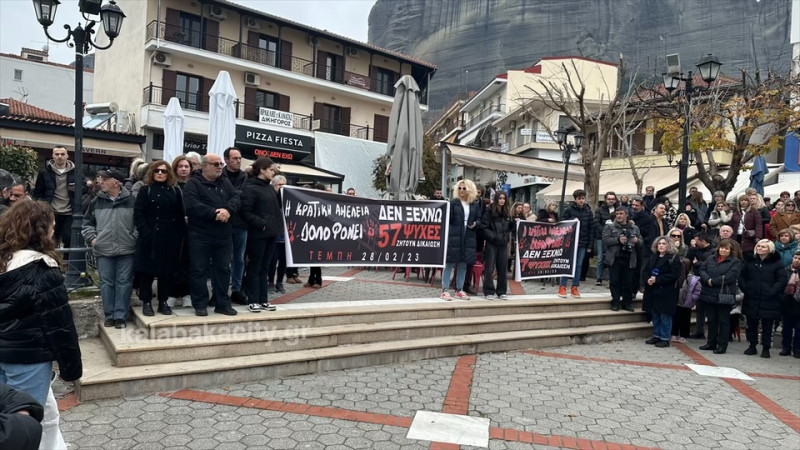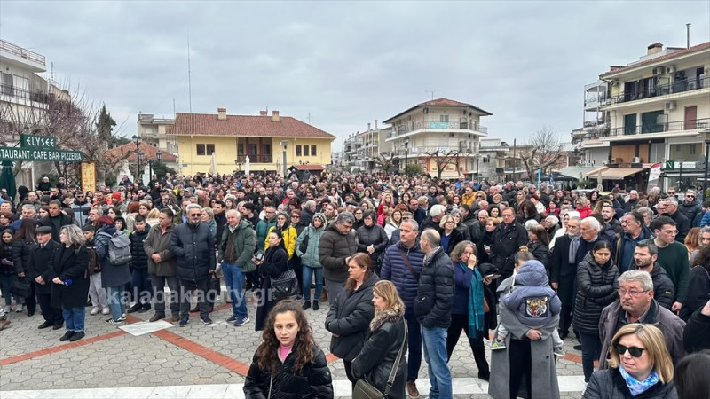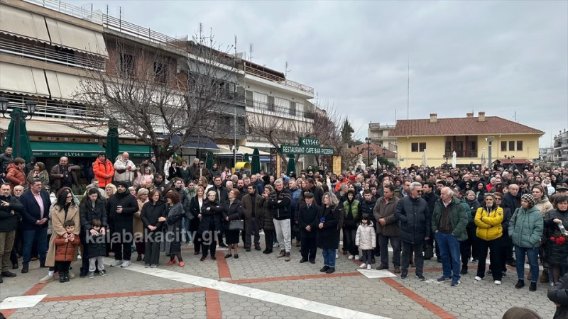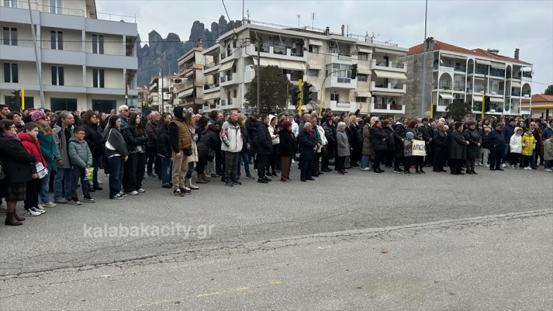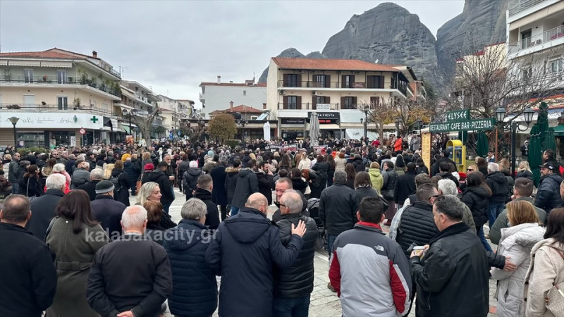Στην πλατεία της Καλαμπάκας Ρήγα Φεραίου συγκεντρώθηκαν σήμερα Κυριακή 26/1 κάτοικοι της πόλης και του Δήμου Μετεώρων, ανταποκρινόμενοι στο κάλεσμα του Συλλόγου Συγγενών Θυμάτων των Τεμπών.