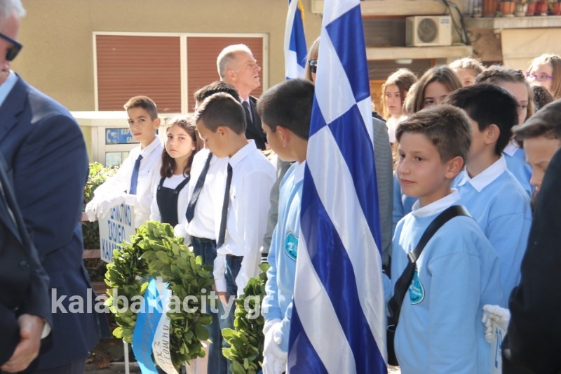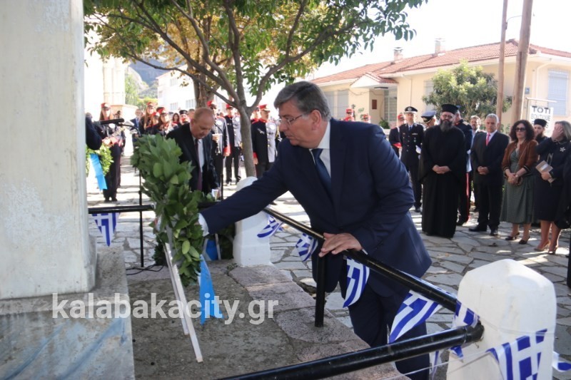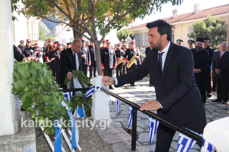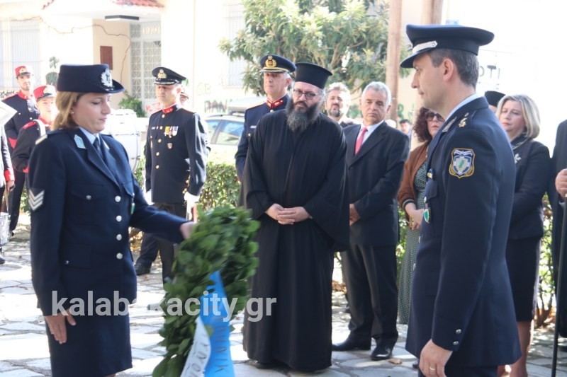 Στη συνέχεια έγινε κατάθεση στεφάνων από τη Δημοτική Αρχή, τα σχολεία της πόλης μας, της Αστυνομίας, της Πυροσβεστικής και της Περιφερειακής Ενότητας Τρικάλων.