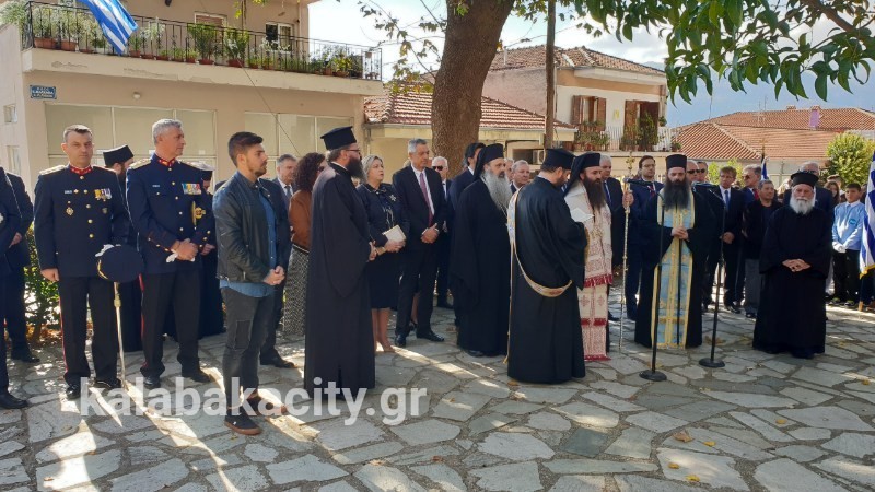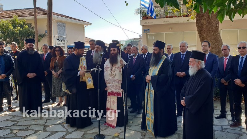 Στο Ηρώο των πεσόντων στον αύλειο χώρο του Μητροπολιτικού Ναού του Αγίου Βησσαρίωνος έγινε σήμερα μετά την επίσημη δοξολογία η επιμνημόσυνη δέηση από τον Μητροπολίτη Σταγών και Μετεώρων κ.κ. Θεόκλητο.