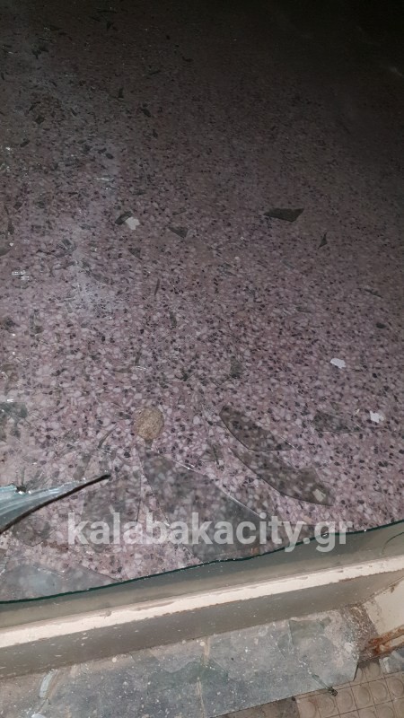 Πέτρα που πέταξαν άγνωστοι στο τζαμι του καταστήματος το έσπασε ξεσηκώνοντας απο το θόρυβο την γειτονιά.