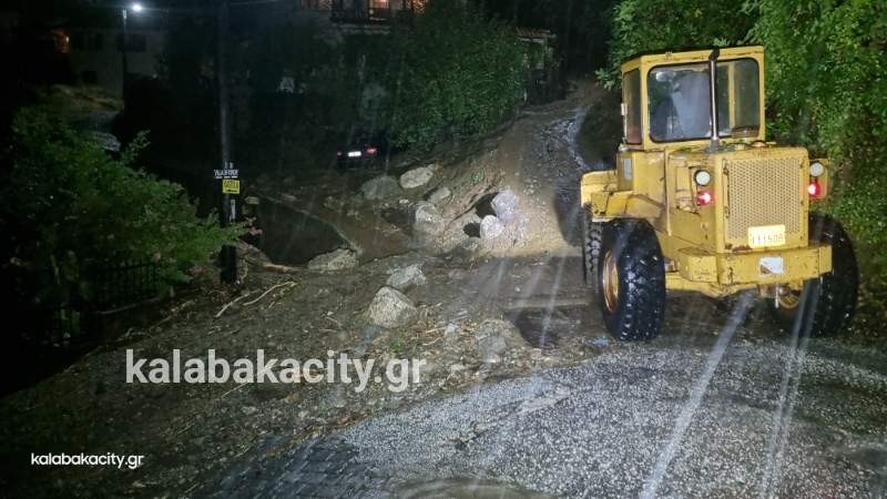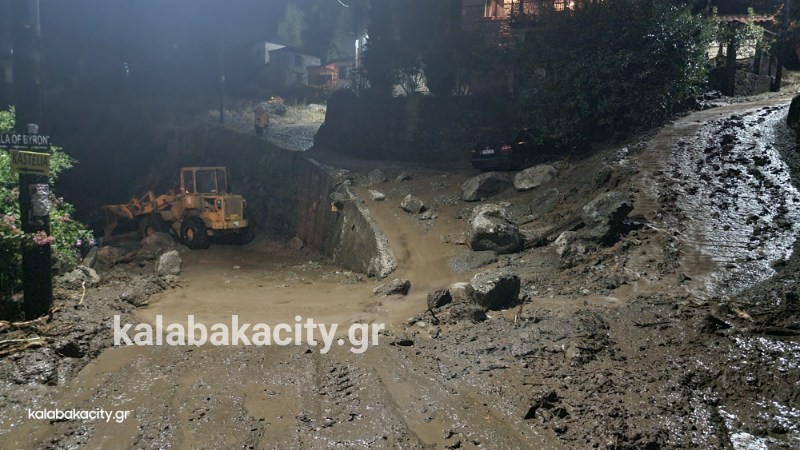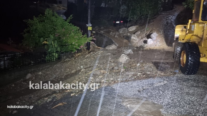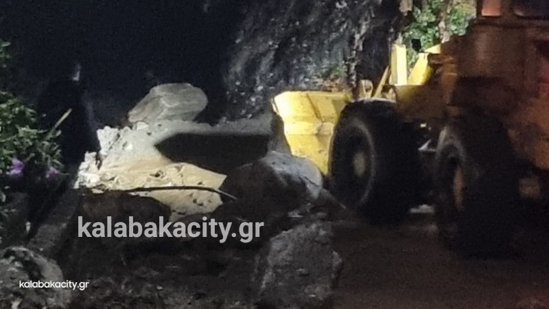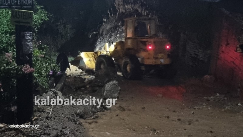 Άμεσα έγινε και η απομάκρυνση από τις μεγάλες πέτρες και χώματα ώστε το πρωί της Πέμπτης η διέλευση των οχημάτων να γίνεται ομαλά.