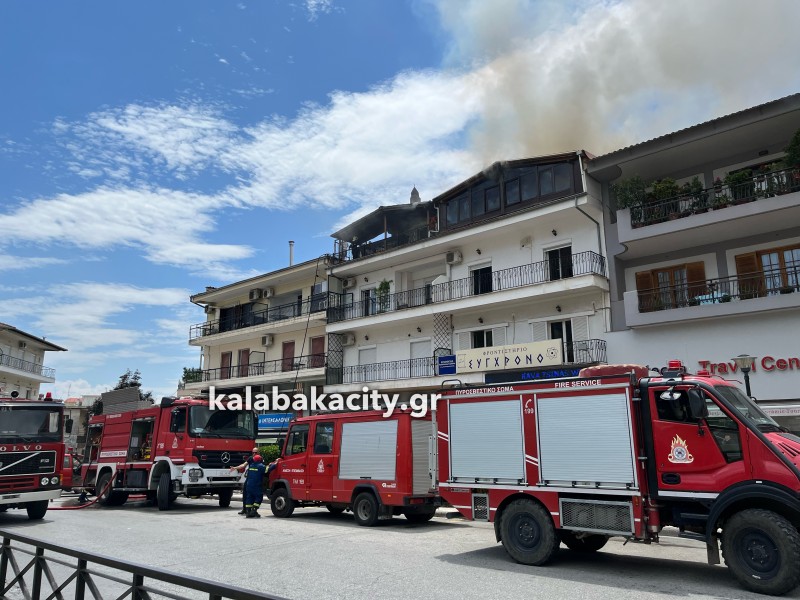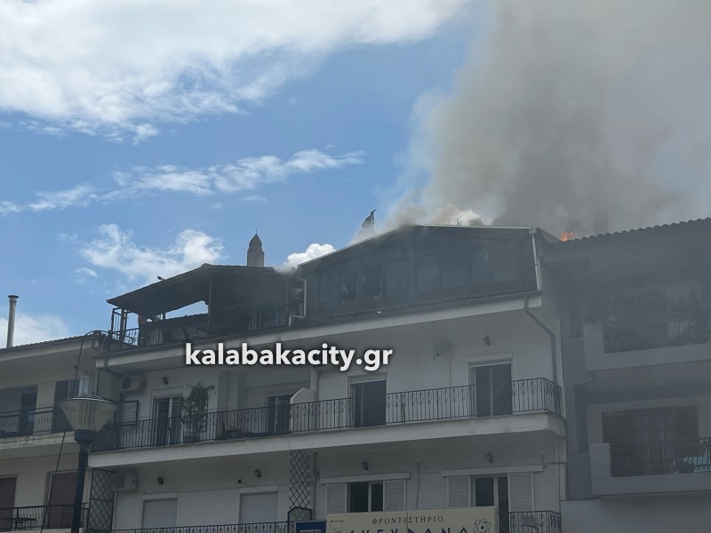 Νέα ενημέρωση: Μετά από υπεράνθρωπες προσπάθειες των Πυροσβεστών η φωτιά τέθηκε υπό έλεγχο με μεγάλες ζημιές στην σοφίτα της πολυκατοικίας. Στο περιστατικό το Α.Τ Μετεώρων συμμετείχε στην ρύθμιση της κυκλοφορίας που διακόπηκε στο σημείο ενώ βρισκόταν και ασθενοφόρο του ΕΚΑΒ για κάθε ενδεχόμενο.