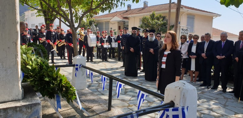 Στη συνέχεια ακολούθησε η επιμνημόσυνη δέηση και η κατάθεση στεφάνων στο Ηρώο των πεσόντων.