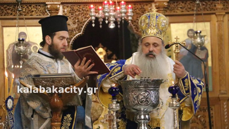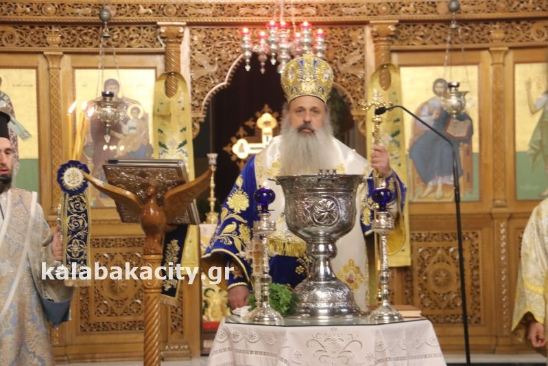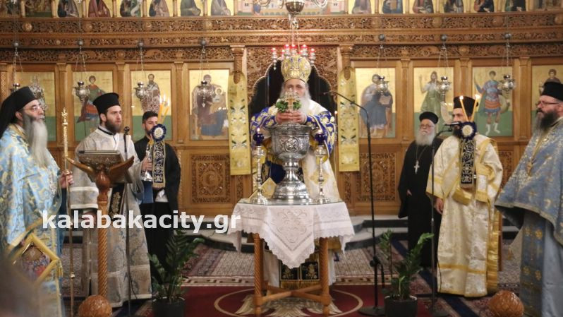 Ο Σεβασμιότατος Μητροπολίτης Σταγών και Μετεώρων κ. Θεόκλητος χοροστάτησε κατά τον Όρθρον, λειτούργησε και τέλεσε τον Μεγάλο Αγιασμό.