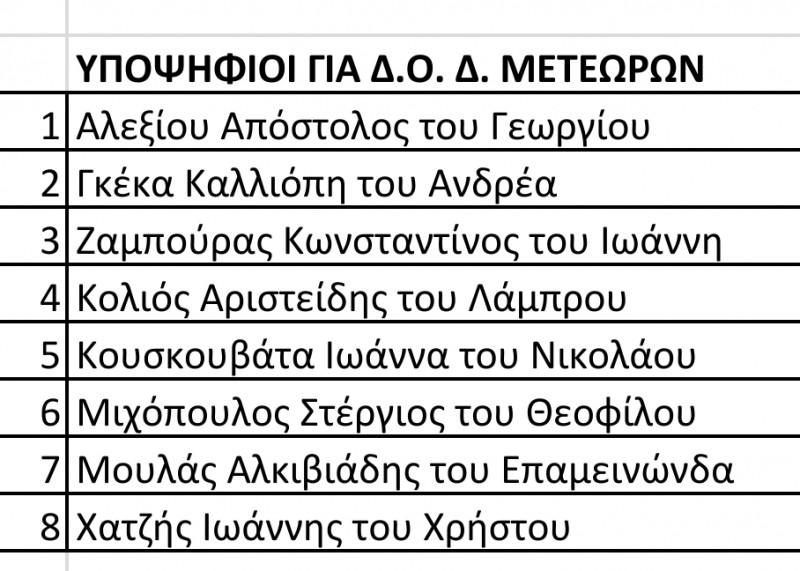 Για Σ.Ε. Δ. Μετεώρων εκλέγονται 5 μέλη (1 σταυρός).