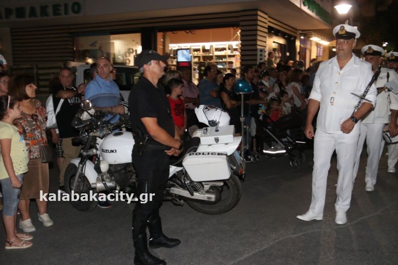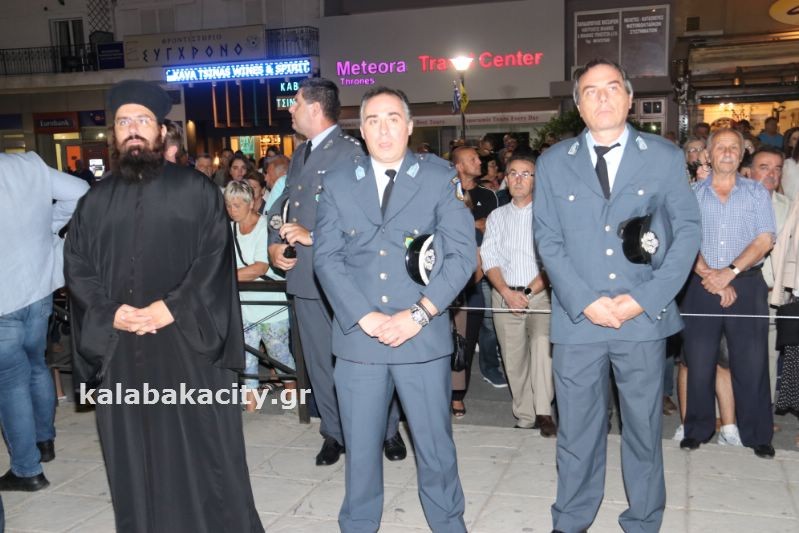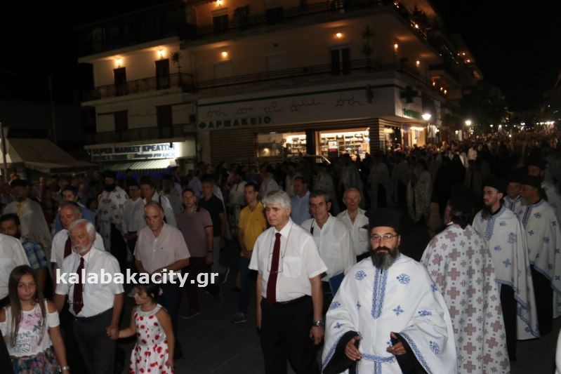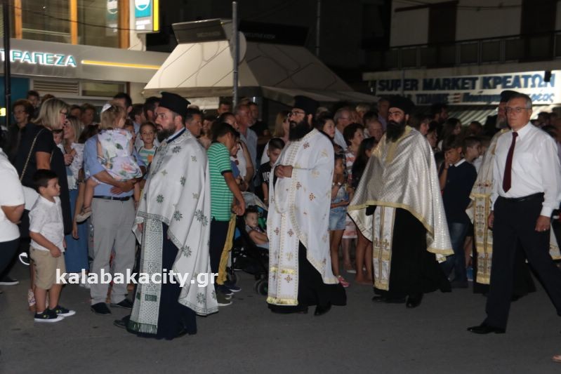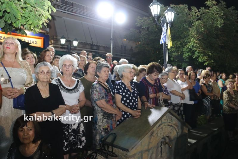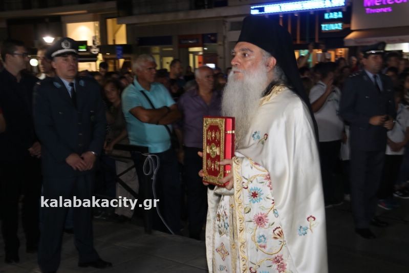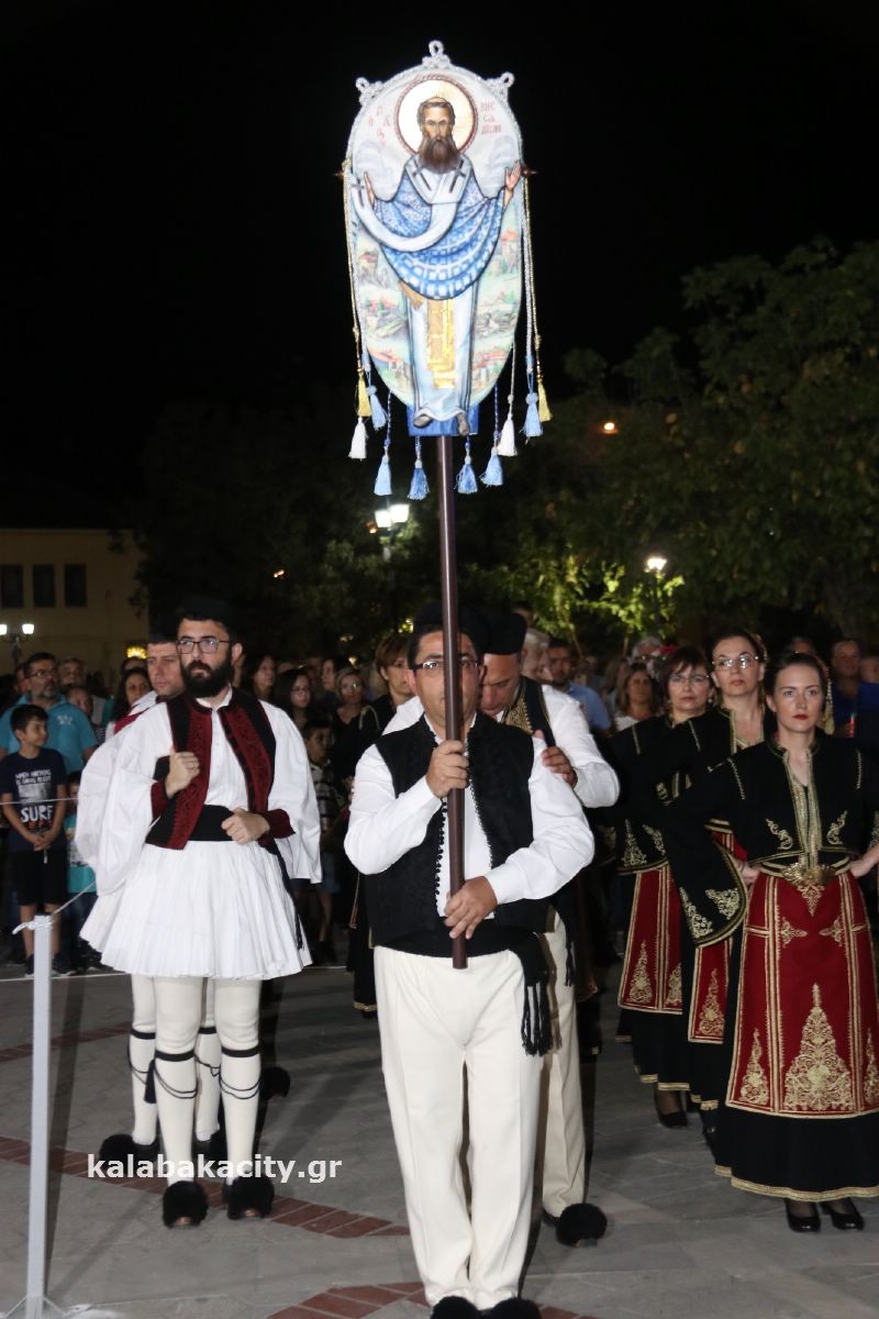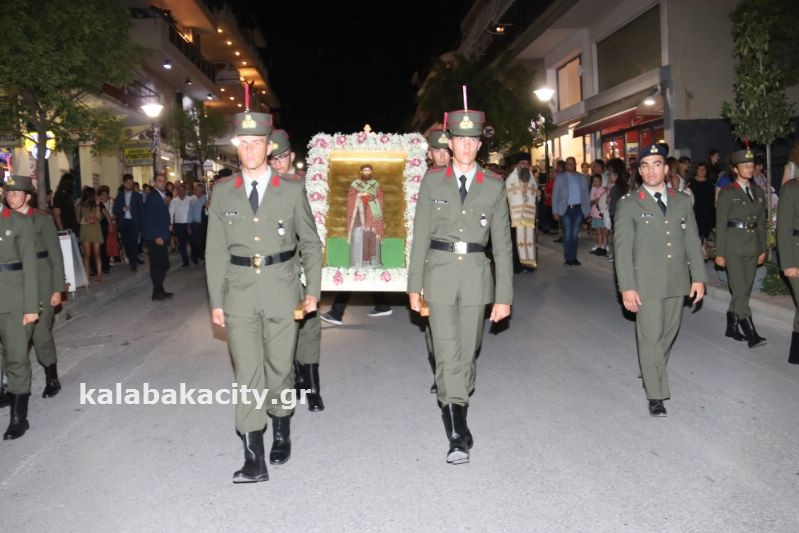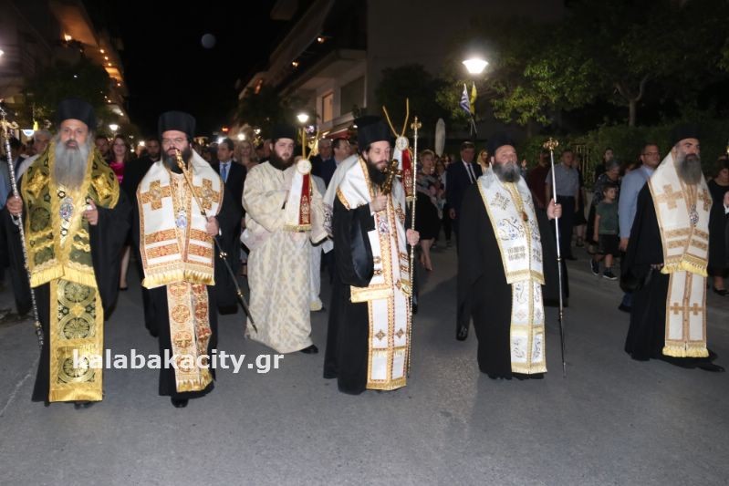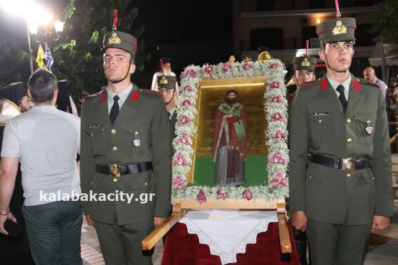 Μετά τον Εσπερινό έγινε η λιτάνευση της ιεράς Εικόνος και της Τιμίας Κάρας του Ἁγίου, στις οδούς Βλαχάβα καί Τρικάλων