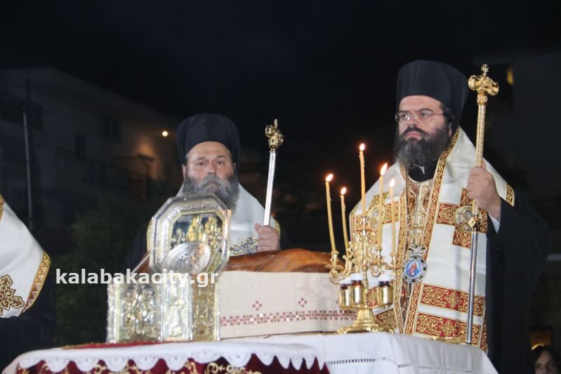 Συνεχίστηκαν σήμερα οι εκδηλώσεις εορτασμού του Αγίου Βησσαρίωνος στην Καλαμπάκα, με τον Μέγα Εσπερινό και την λιτάνευση της Ιεράς εικόνας και της Τιμίας Κάρας του Αγίου.