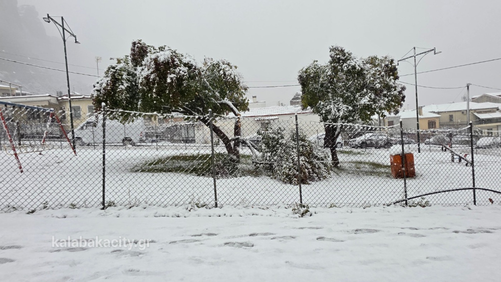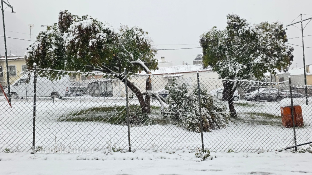 Το βαρύ χιόνι και η μεγάλη ποσότητα που έχει πέσει και συνεχίζει είχε ως αποτέλεσμα κλαδί δέντρου που βρίσκεται στην παιδική χαρά της οδού Μετεώρων να σπάσει.