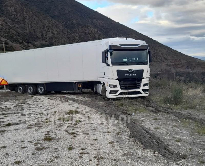 Μετά από σχετικές ενέργειες του Α.Τ Μετεώρων και με την βοήθεια μεγάλου οχήματος η νταλίκα ξεκόλλησε από το σημείο και συνέχισε τον προορισμό της!