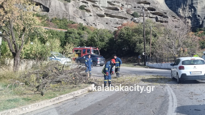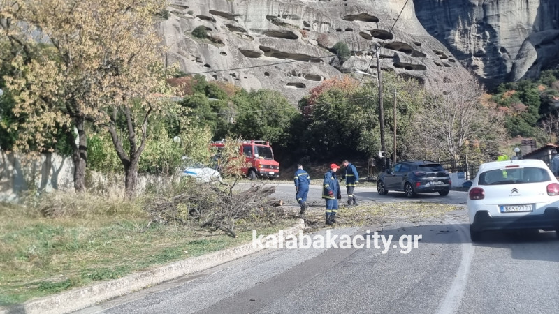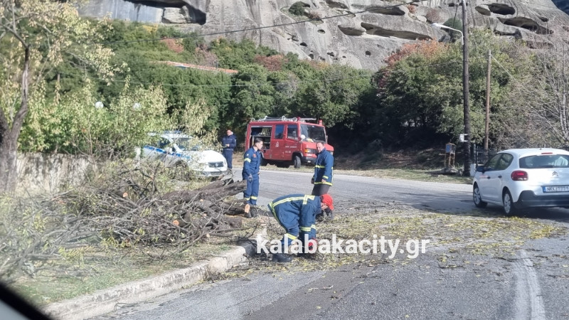Η Π.Υ Καλαμπάκας απομάκρυνε το δέντρο ενώ η αστυνομία ρυθμιζε την κυκλοφορία των οχημάτων.