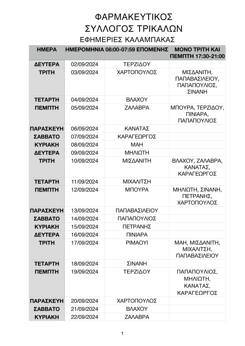 Καλαμπάκα: Οι εφημερίες των φαρμακείων έως 29/12 Διάφορα Από admin Δημοσίευση Αυγ 28, 2024 -9:47 0 325 Κοινοποίηση FacebookTwitterΗλεκτρονικό ΤαχυδρομείοViber Από τον Φαρμακευτικό Σύλλογο Τρικάλων ανακοινώθηκαν οι εφημερίες των φαρμακείων της Καλαμπάκας. Το πρόγραμμα των εφημεριών έως τις 29 Δεκεμβρίου 2024 έχει ως εξής: ΔΙΑΝΥΚΤΕΡΕΥΕΙΕΦΗΜΕΡΙΑΚαλαμπάκαΦΑΡΜΑΚΕΙΑ 0 325 Κοινοποίηση