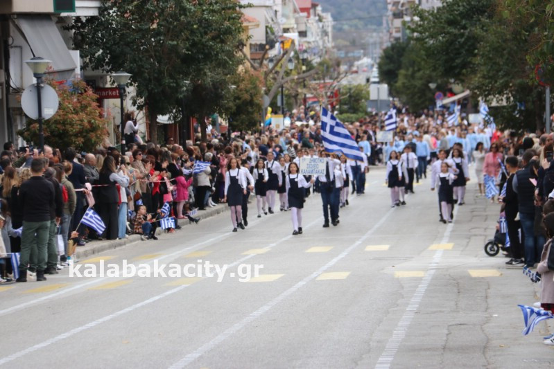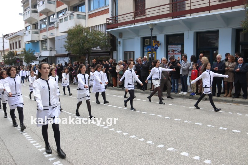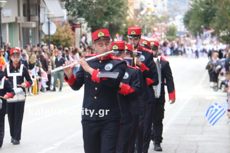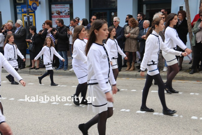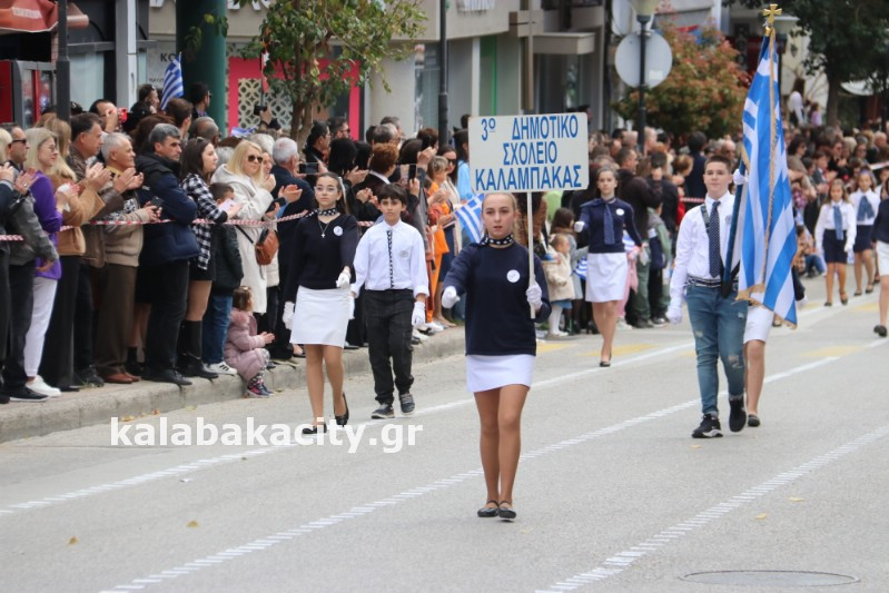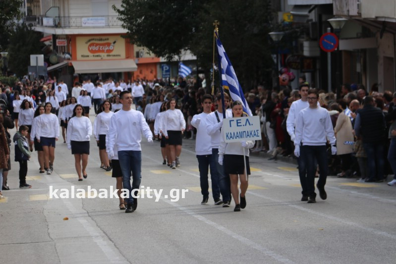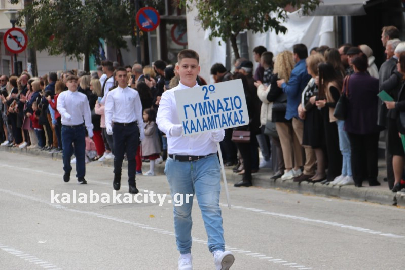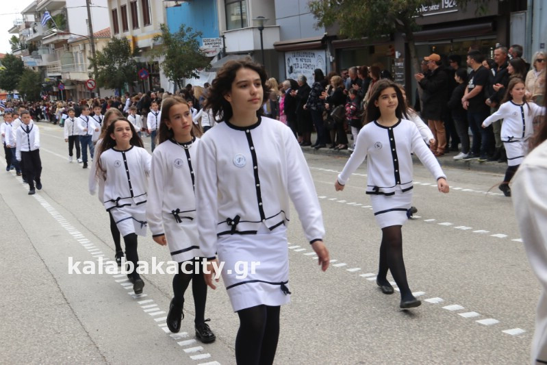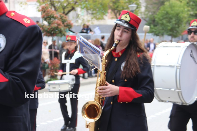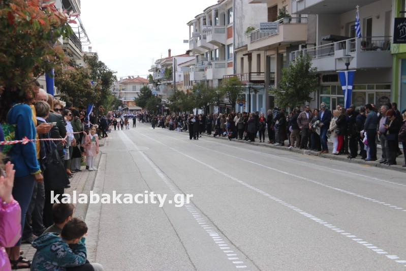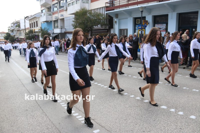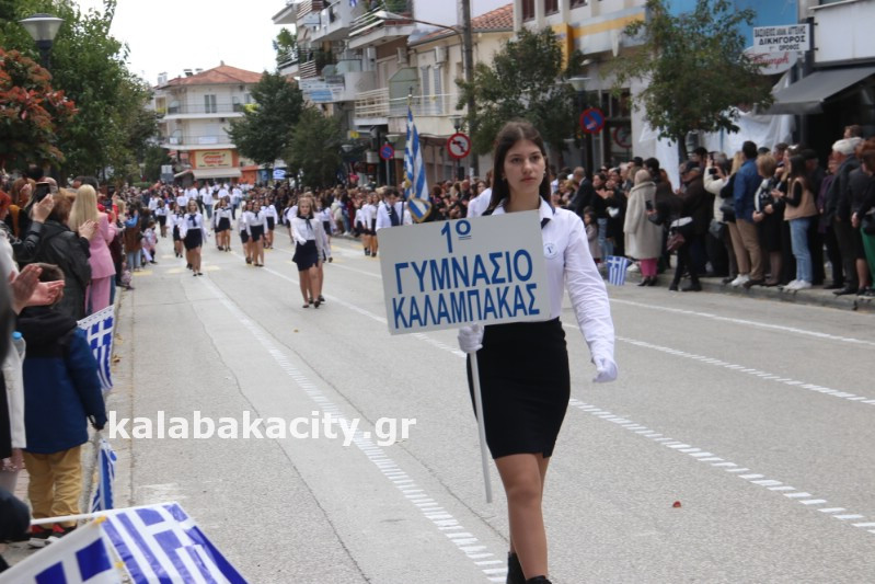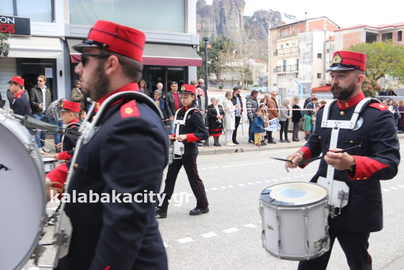 Η παρέλαση ξεκίνησε με την φιλαρμονική του Δήμου Μετεώρων και στην συνέχεια τα μαθητικά τμήματα, ο Οδηγισμός, ο Χορευτικός όμιλος Καλαμπάκας “ΜΕΤΕΩΡΑ”, η Αστυνομία και η Π.Υ Καλαμπάκας πέρασαν από την οδό Τρικάλων της πόλης τιμώντας την Εθνική μας Επέτειο.