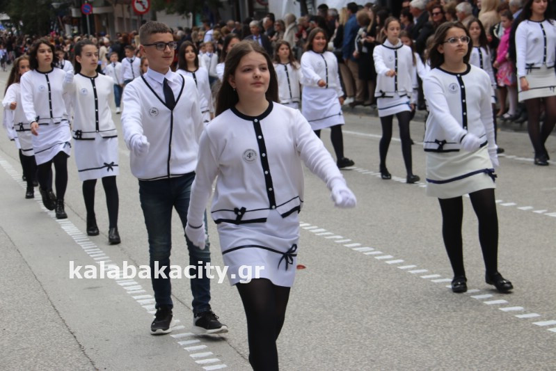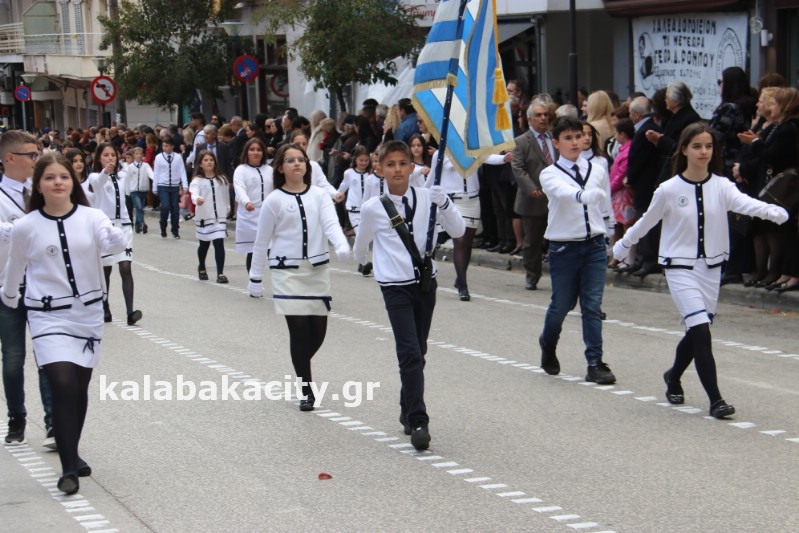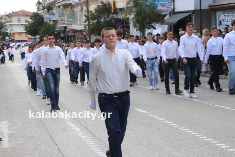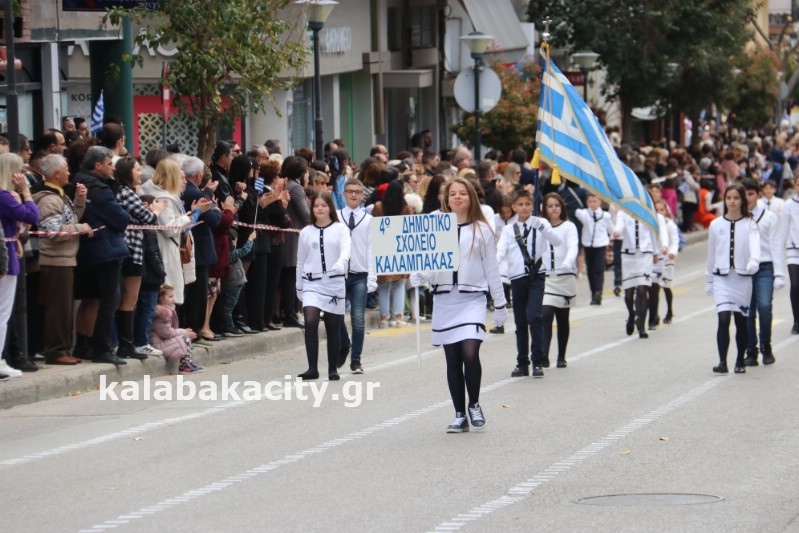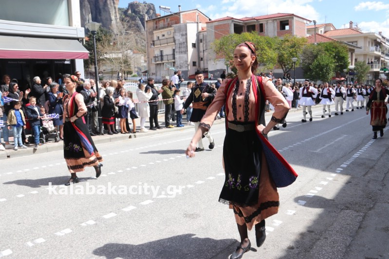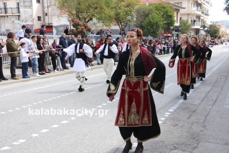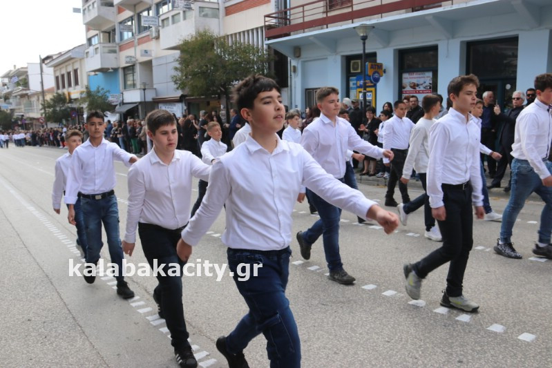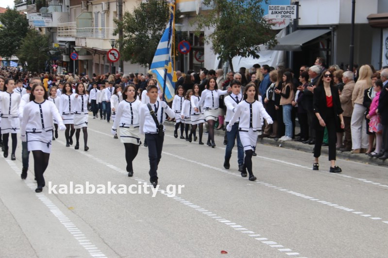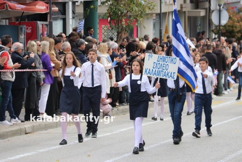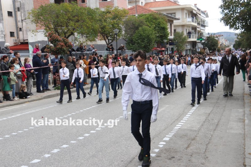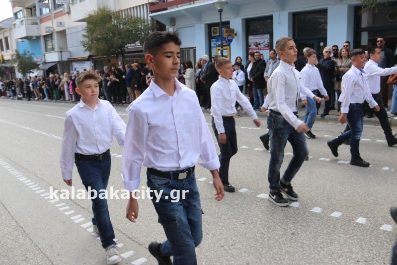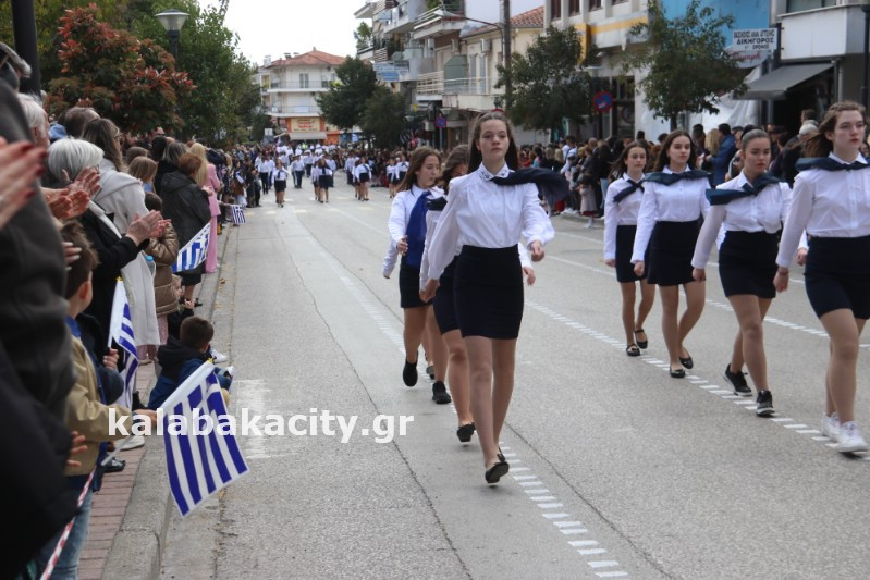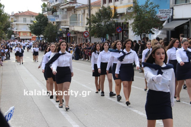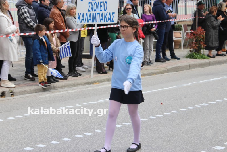 Η παρέλαση ξεκίνησε με την φιλαρμονική του Δήμου Μετεώρων και στην συνέχεια τα μαθητικά τμήματα, ο Οδηγισμός, ο Χορευτικός όμιλος Καλαμπάκας “ΜΕΤΕΩΡΑ”, η Αστυνομία και η Π.Υ Καλαμπάκας πέρασαν από την οδό Τρικάλων της πόλης τιμώντας την Εθνική μας Επέτειο.