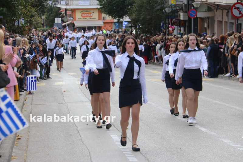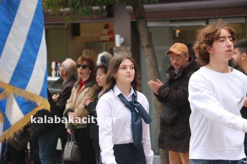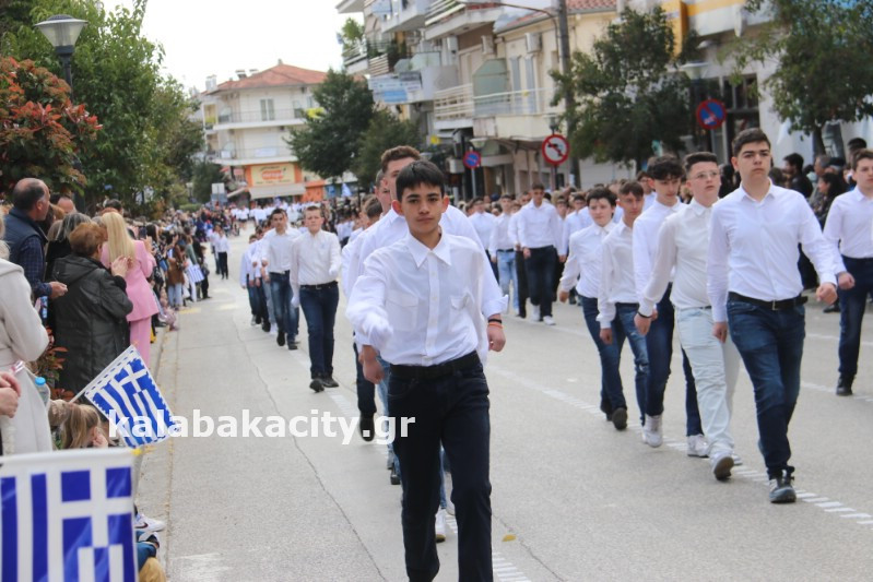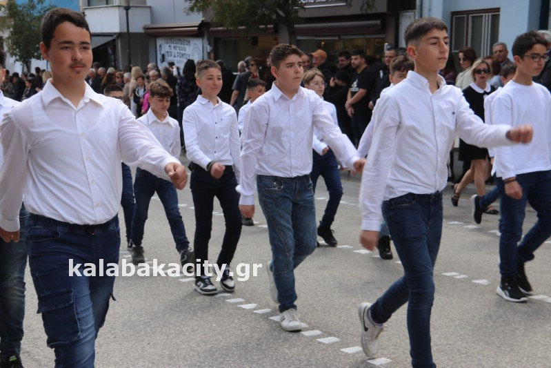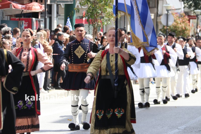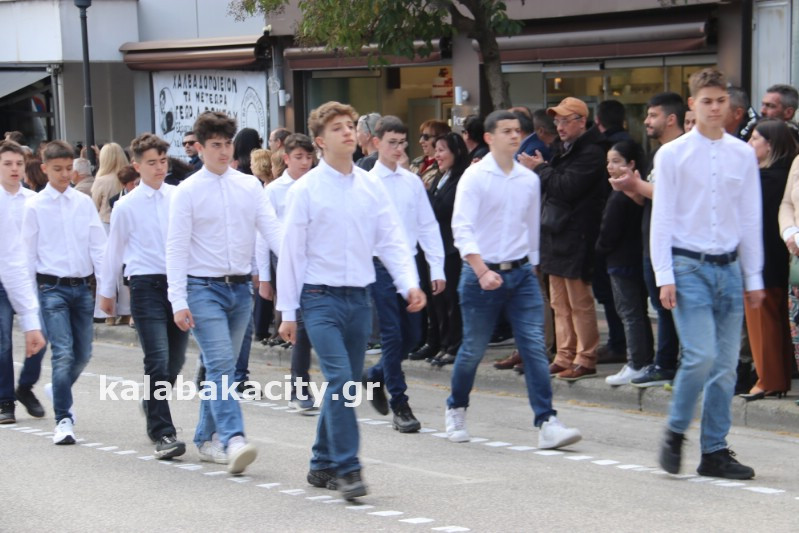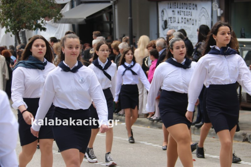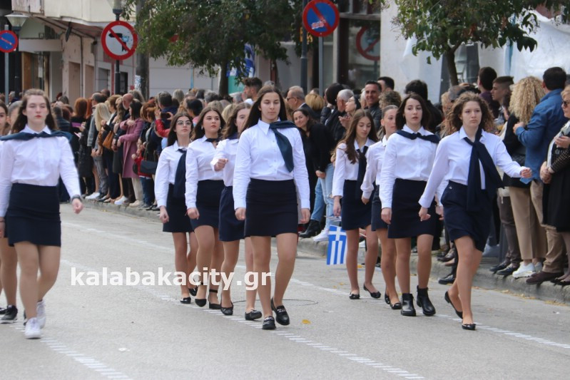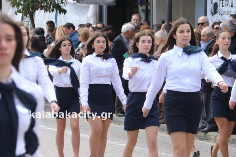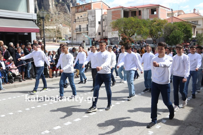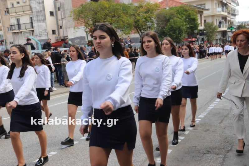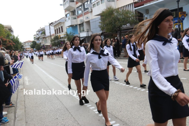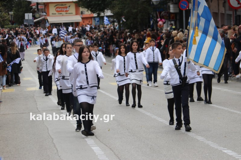 Η παρέλαση ξεκίνησε με την φιλαρμονική του Δήμου Μετεώρων και στην συνέχεια τα μαθητικά τμήματα, ο Οδηγισμός, ο Χορευτικός όμιλος Καλαμπάκας “ΜΕΤΕΩΡΑ”, η Αστυνομία και η Π.Υ Καλαμπάκας πέρασαν από την οδό Τρικάλων της πόλης τιμώντας την Εθνική μας Επέτειο.