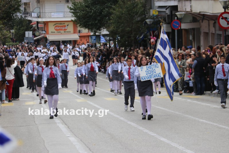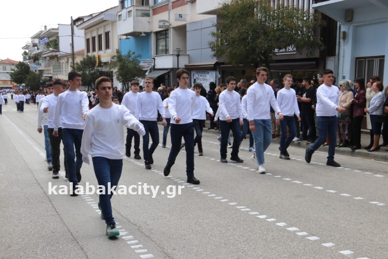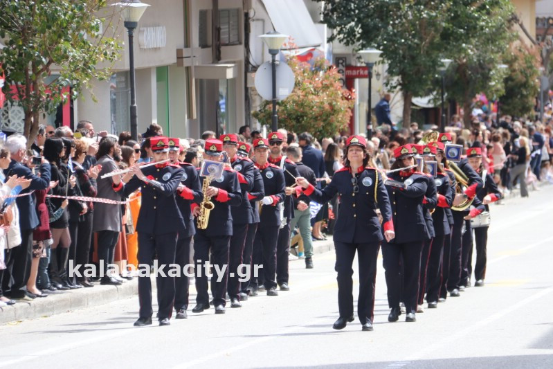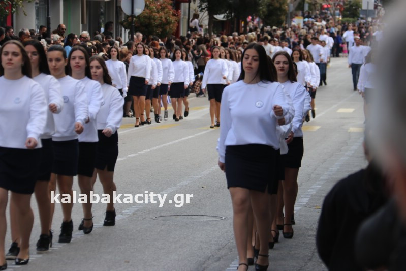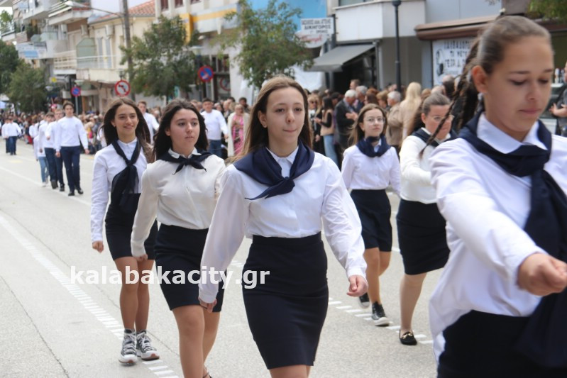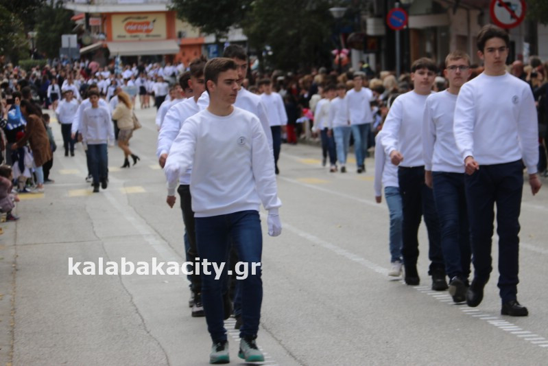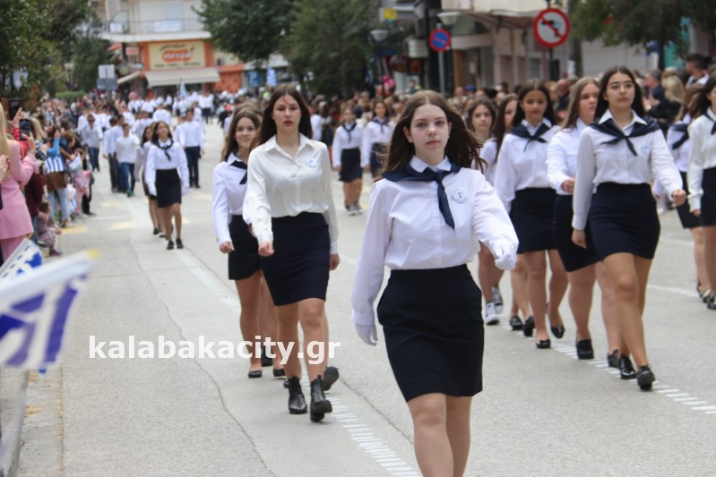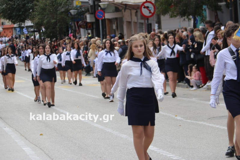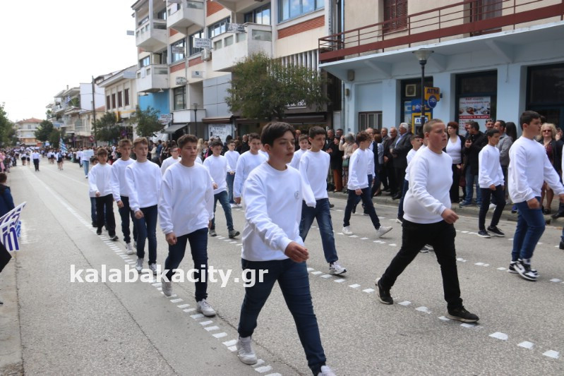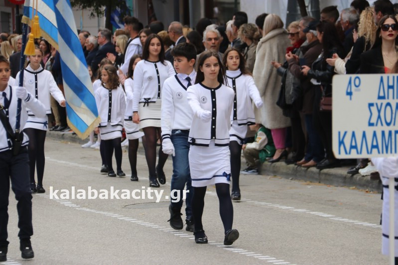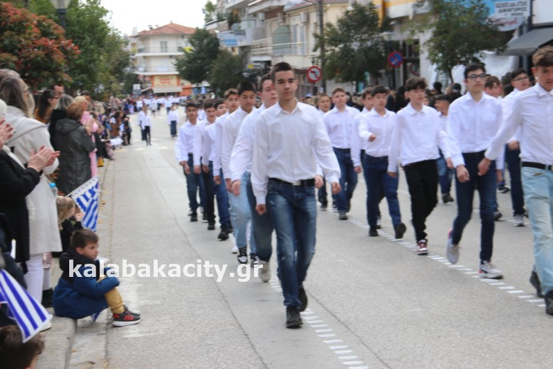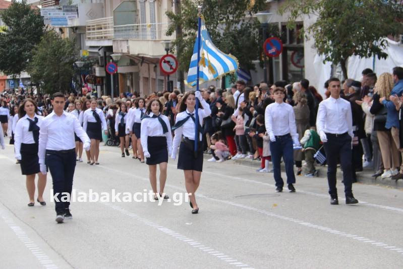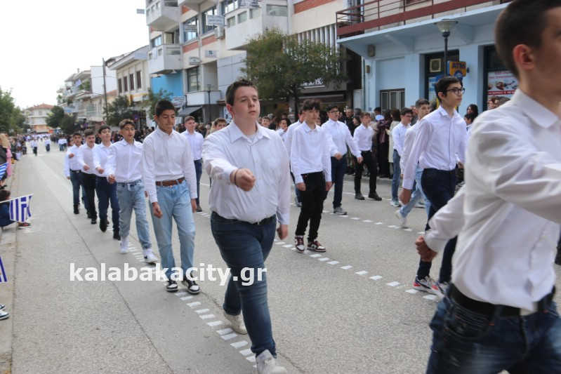 Η παρέλαση ξεκίνησε με την φιλαρμονική του Δήμου Μετεώρων και στην συνέχεια τα μαθητικά τμήματα, ο Οδηγισμός, ο Χορευτικός όμιλος Καλαμπάκας “ΜΕΤΕΩΡΑ”, η Αστυνομία και η Π.Υ Καλαμπάκας πέρασαν από την οδό Τρικάλων της πόλης τιμώντας την Εθνική μας Επέτειο.