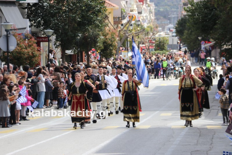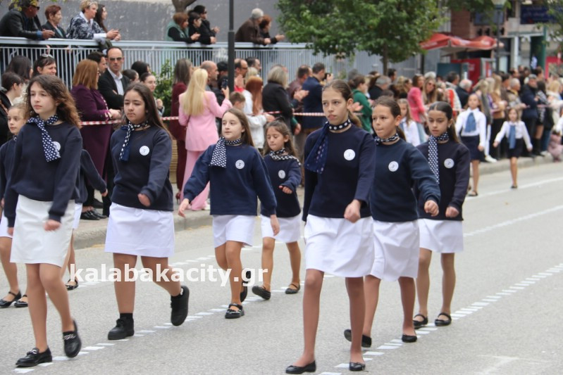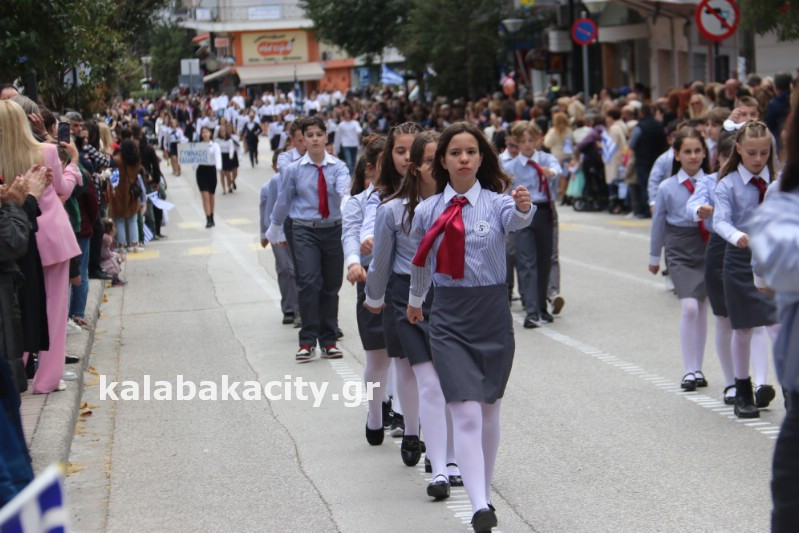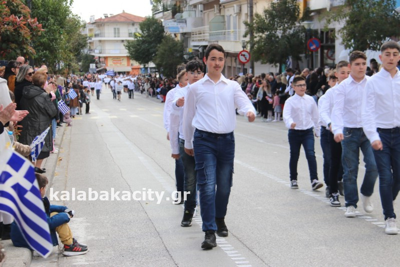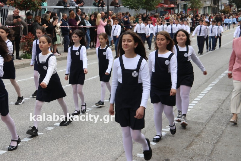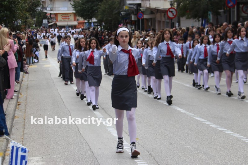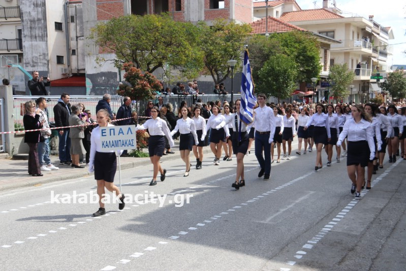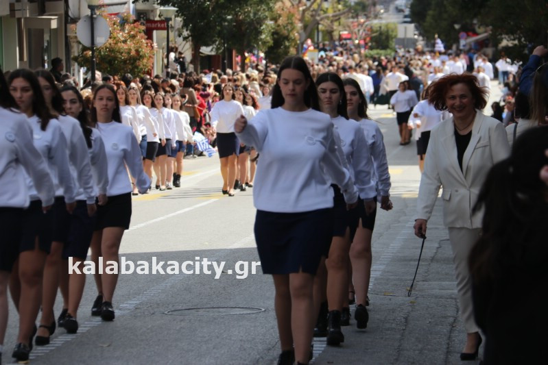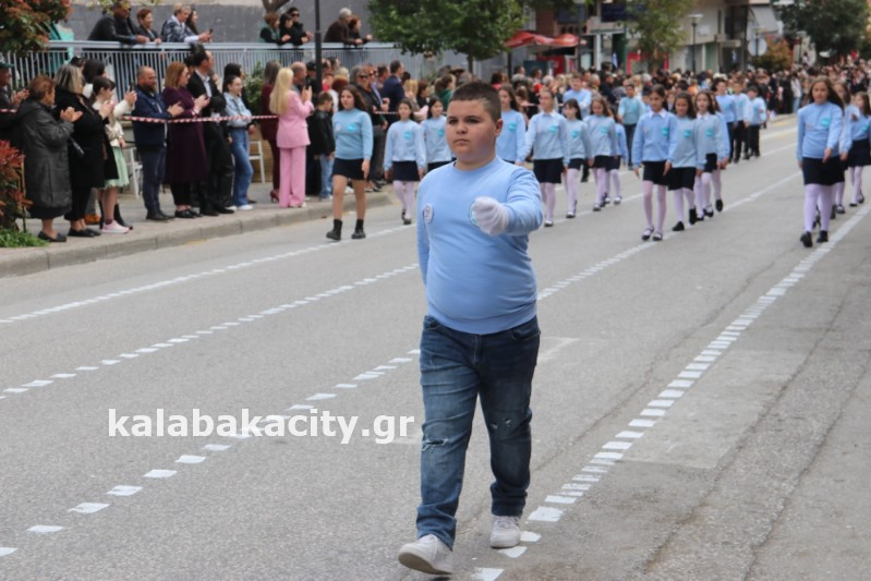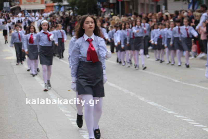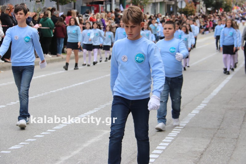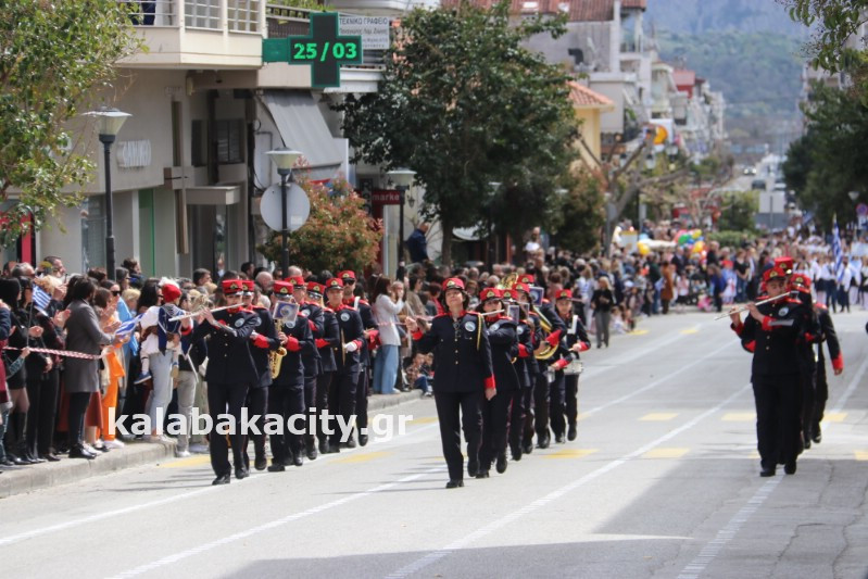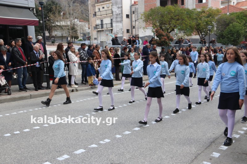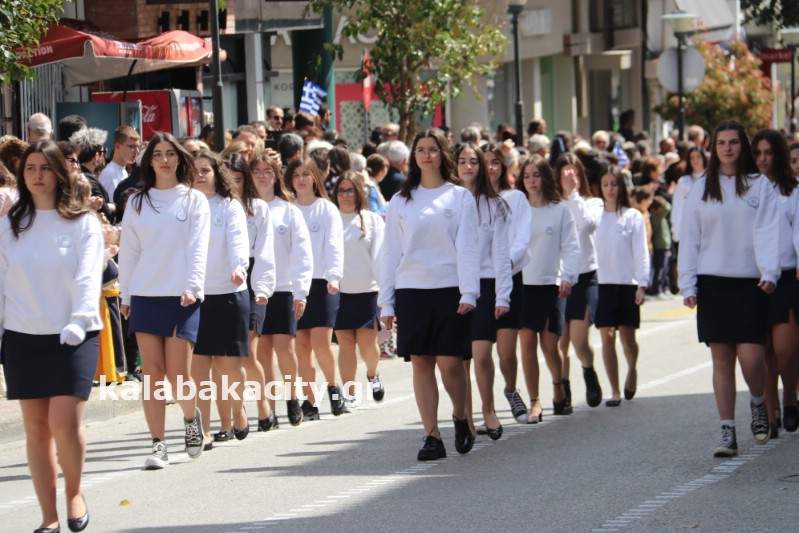 Η παρέλαση ξεκίνησε με την φιλαρμονική του Δήμου Μετεώρων και στην συνέχεια τα μαθητικά τμήματα, ο Οδηγισμός, ο Χορευτικός όμιλος Καλαμπάκας “ΜΕΤΕΩΡΑ”, η Αστυνομία και η Π.Υ Καλαμπάκας πέρασαν από την οδό Τρικάλων της πόλης τιμώντας την Εθνική μας Επέτειο.