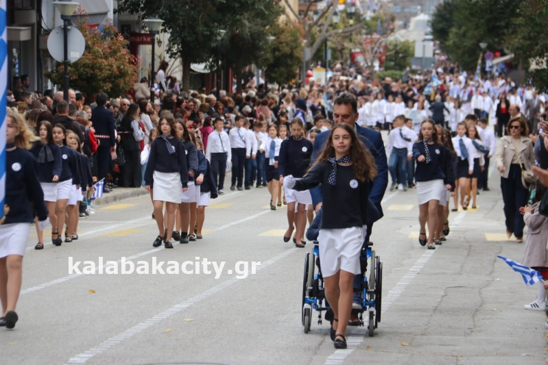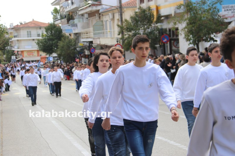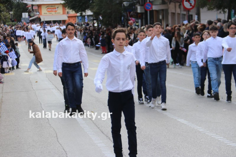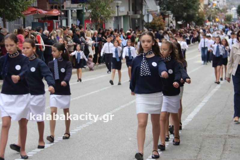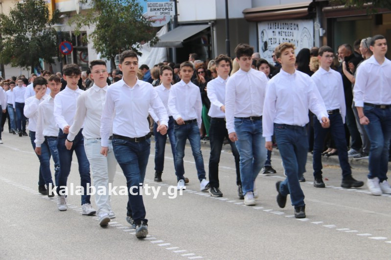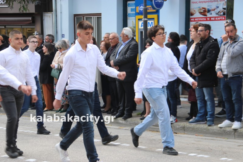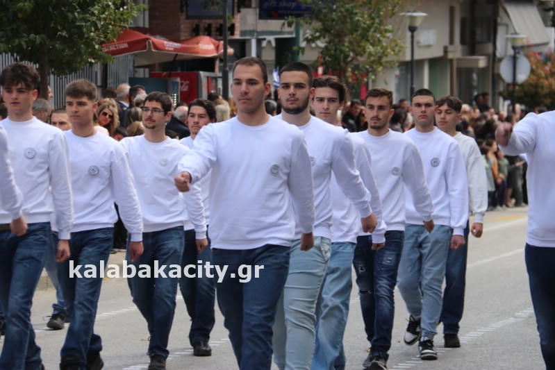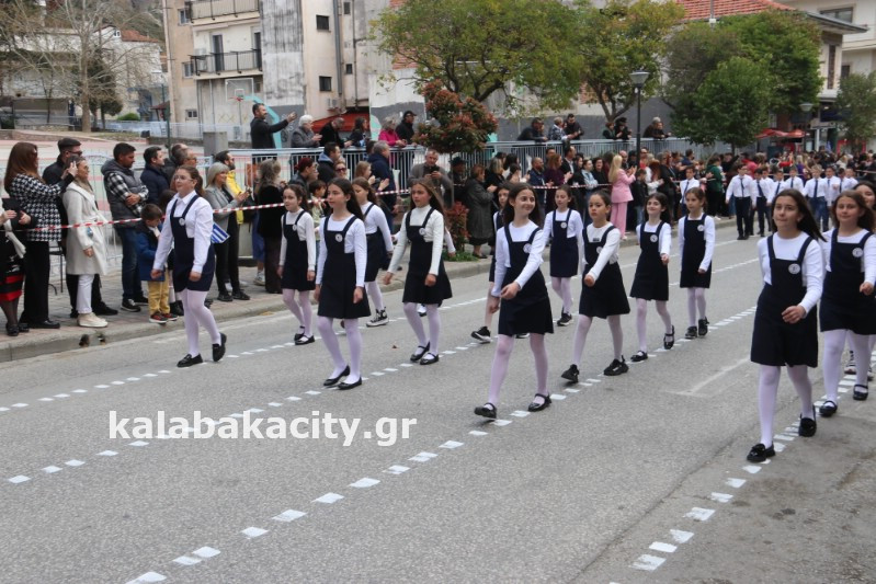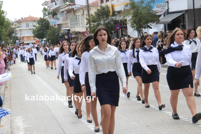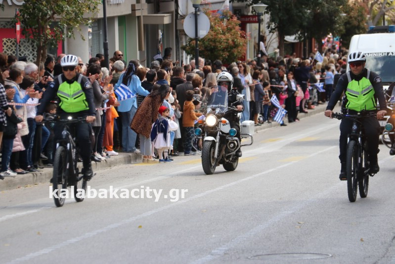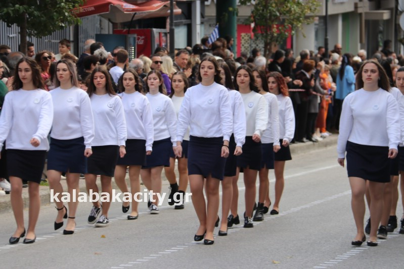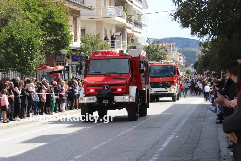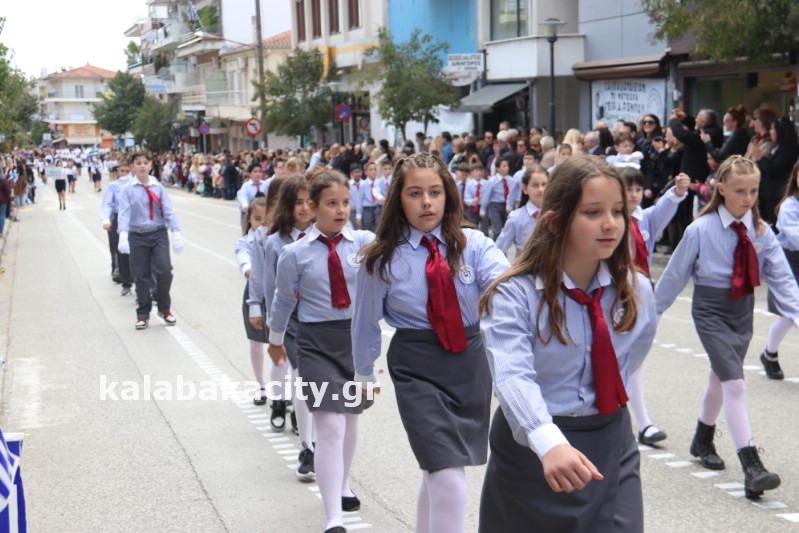 Η παρέλαση ξεκίνησε με την φιλαρμονική του Δήμου Μετεώρων και στην συνέχεια τα μαθητικά τμήματα, ο Οδηγισμός, ο Χορευτικός όμιλος Καλαμπάκας “ΜΕΤΕΩΡΑ”, η Αστυνομία και η Π.Υ Καλαμπάκας πέρασαν από την οδό Τρικάλων της πόλης τιμώντας την Εθνική μας Επέτειο.