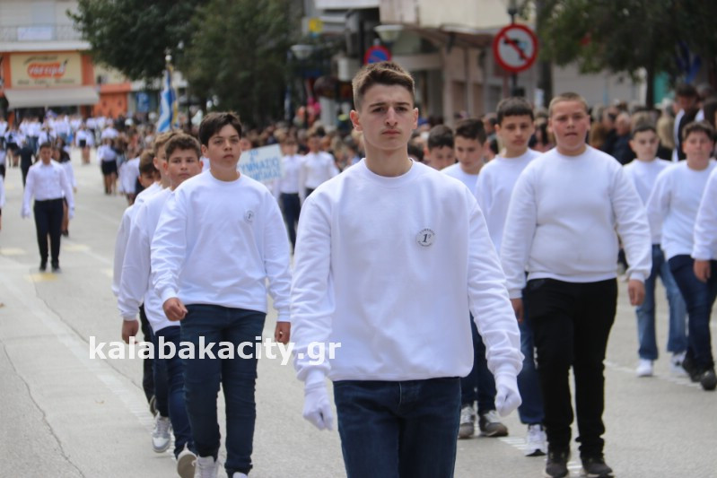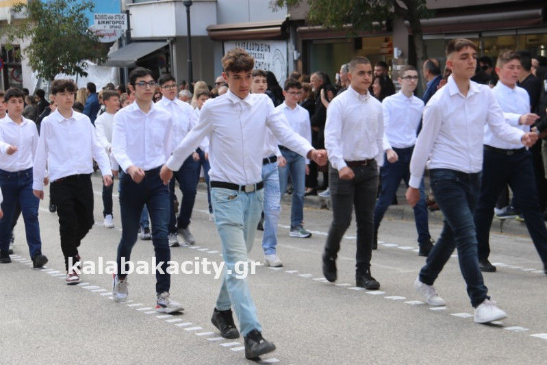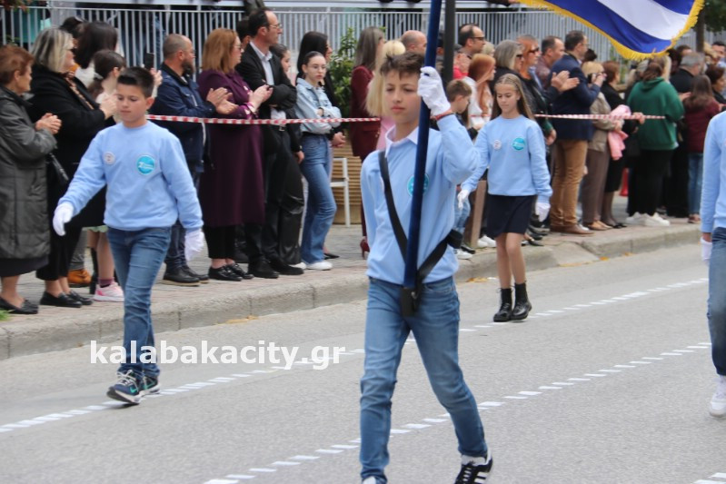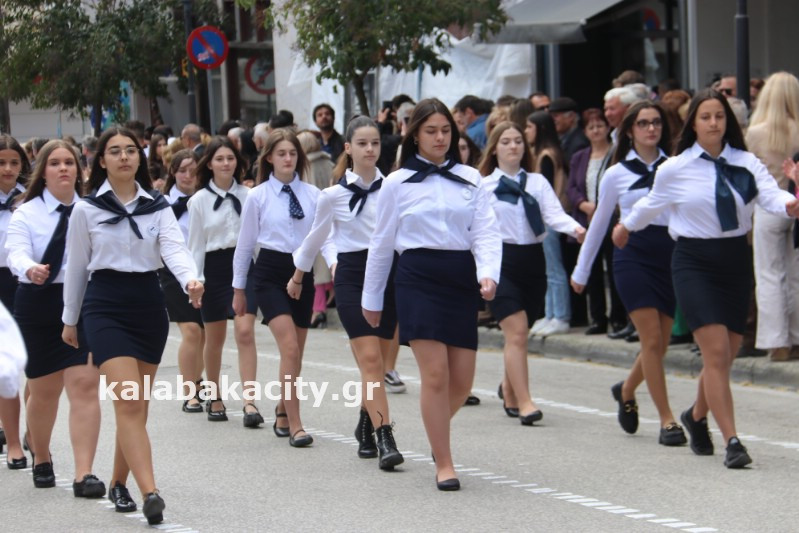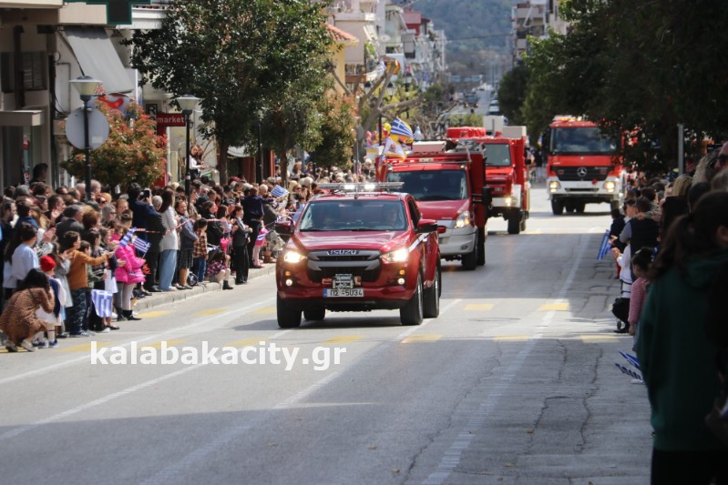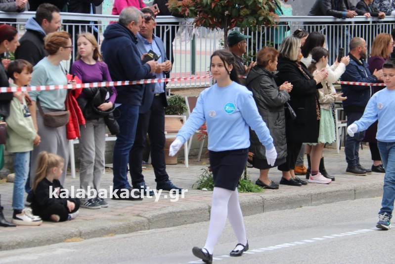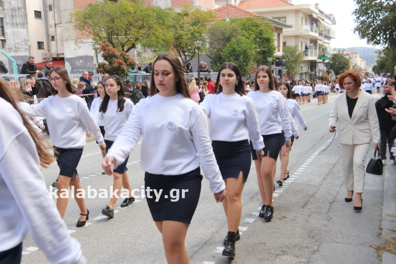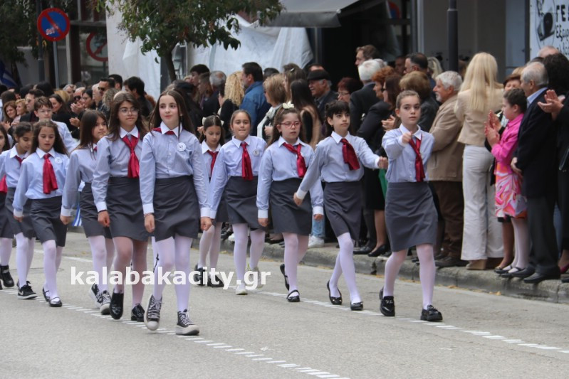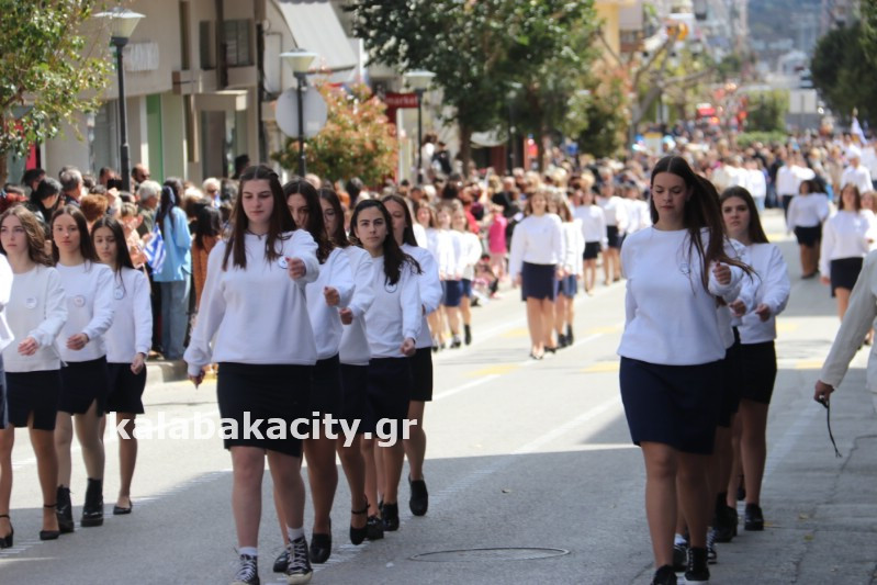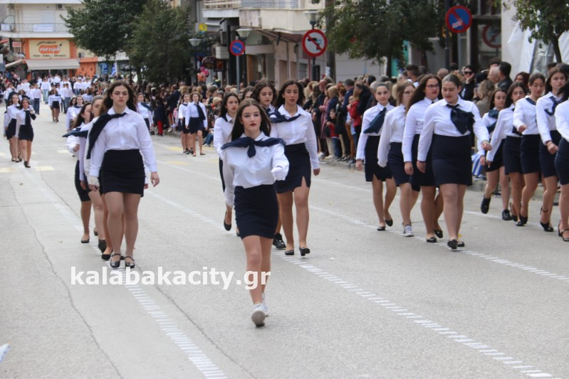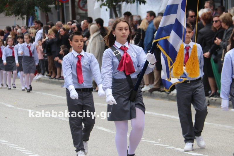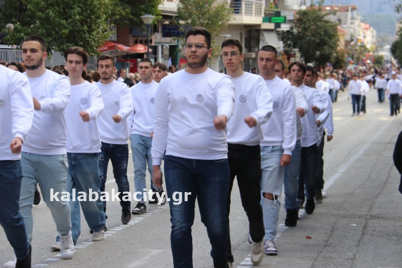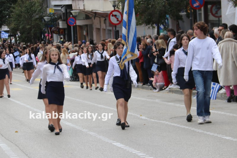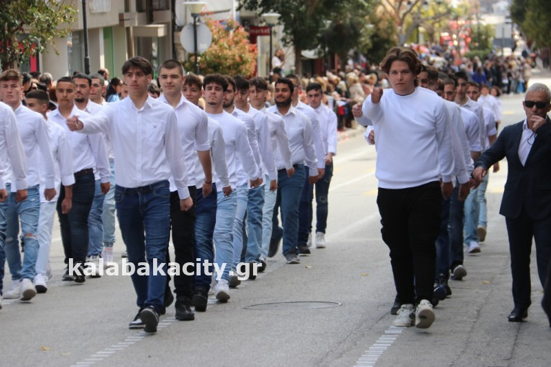 Η παρέλαση ξεκίνησε με την φιλαρμονική του Δήμου Μετεώρων και στην συνέχεια τα μαθητικά τμήματα, ο Οδηγισμός, ο Χορευτικός όμιλος Καλαμπάκας “ΜΕΤΕΩΡΑ”, η Αστυνομία και η Π.Υ Καλαμπάκας πέρασαν από την οδό Τρικάλων της πόλης τιμώντας την Εθνική μας Επέτειο.