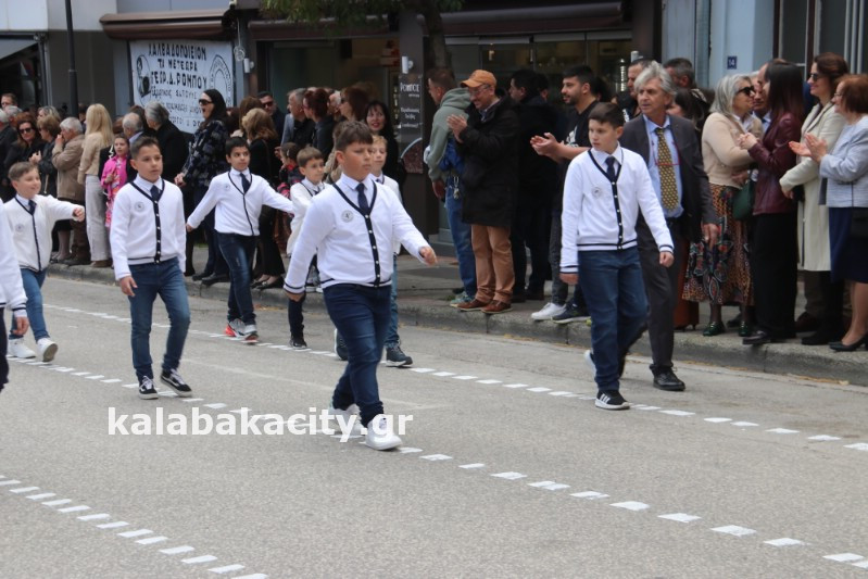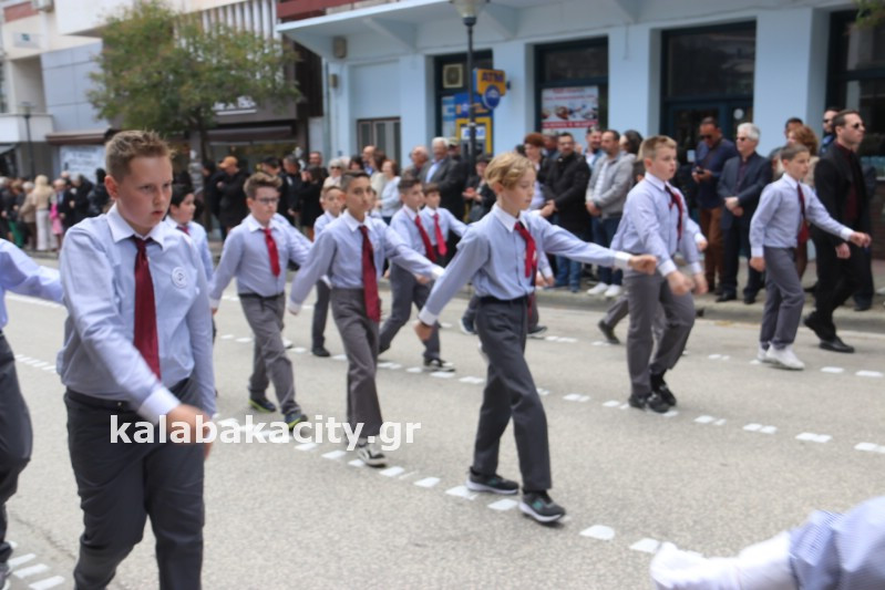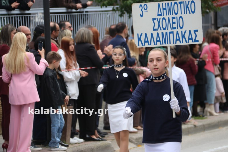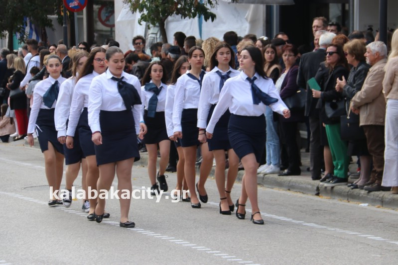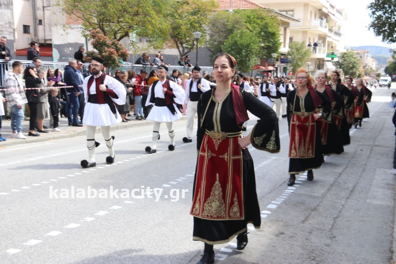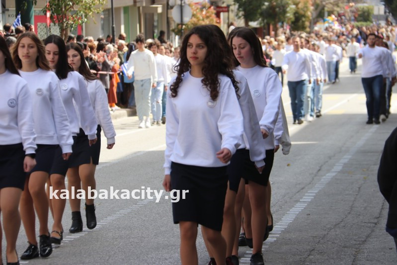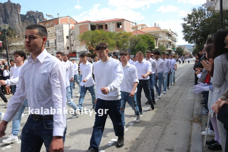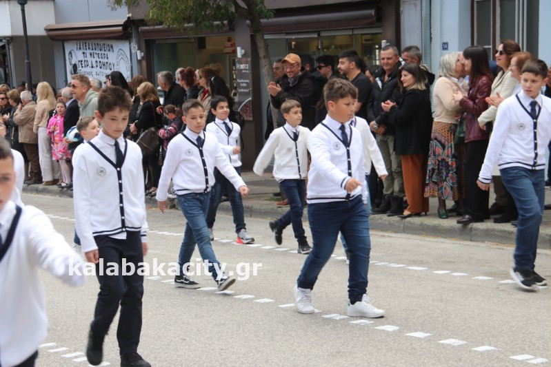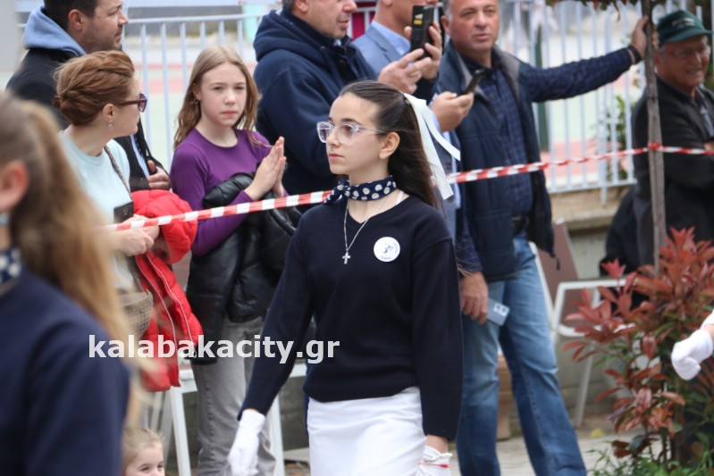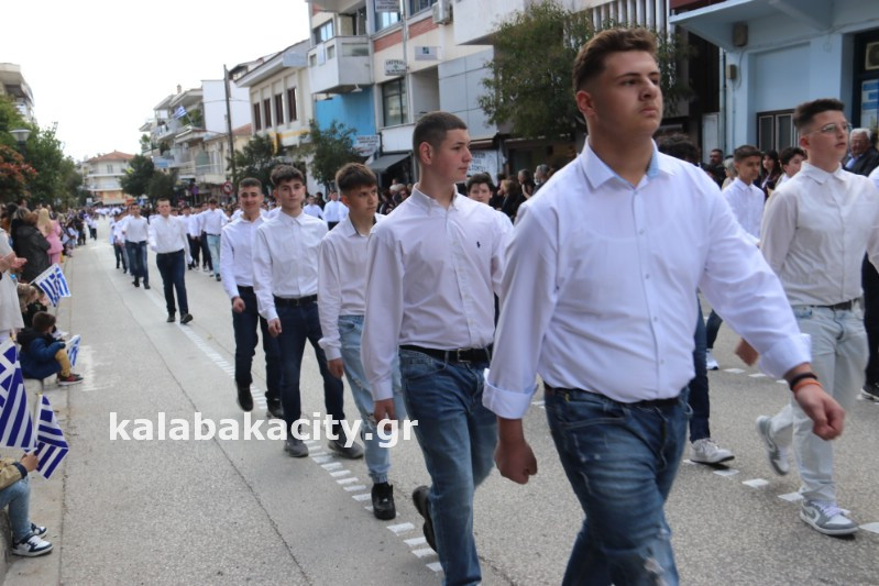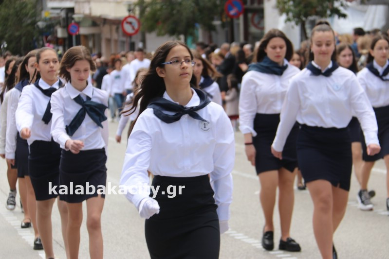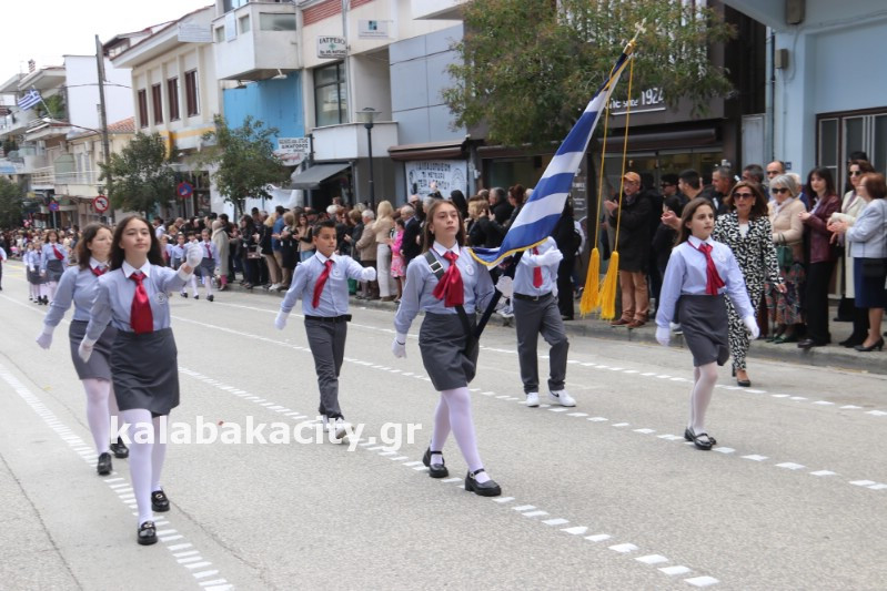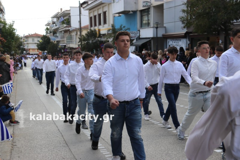 Η παρέλαση ξεκίνησε με την φιλαρμονική του Δήμου Μετεώρων και στην συνέχεια τα μαθητικά τμήματα, ο Οδηγισμός, ο Χορευτικός όμιλος Καλαμπάκας “ΜΕΤΕΩΡΑ”, η Αστυνομία και η Π.Υ Καλαμπάκας πέρασαν από την οδό Τρικάλων της πόλης τιμώντας την Εθνική μας Επέτειο.