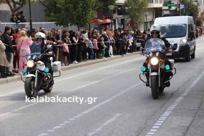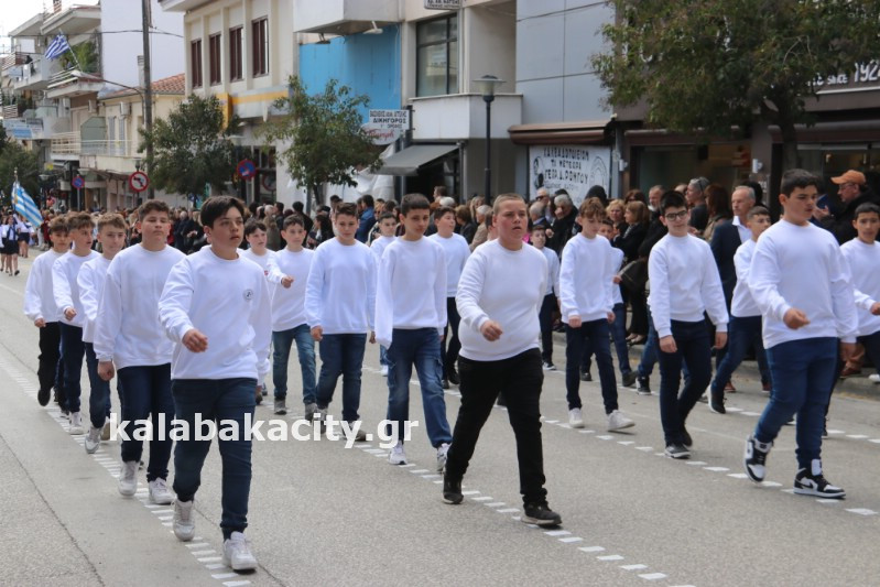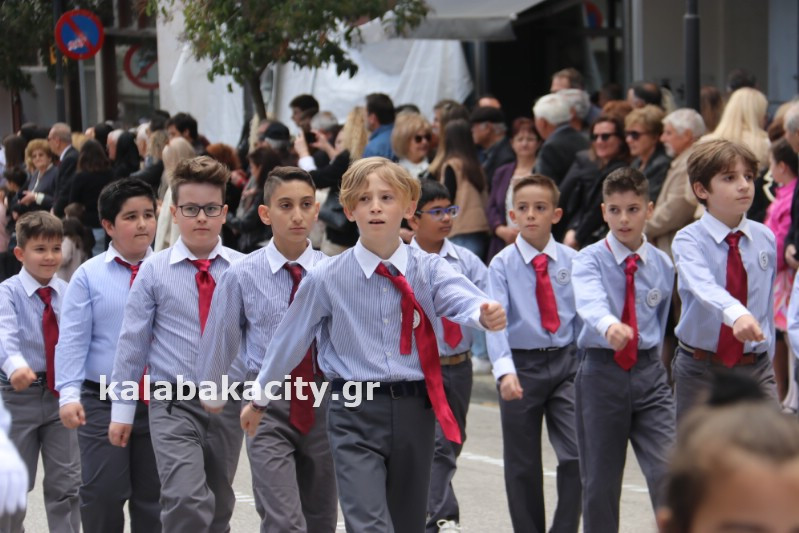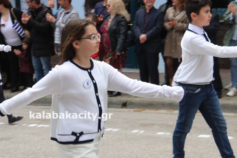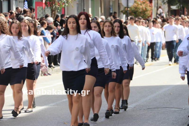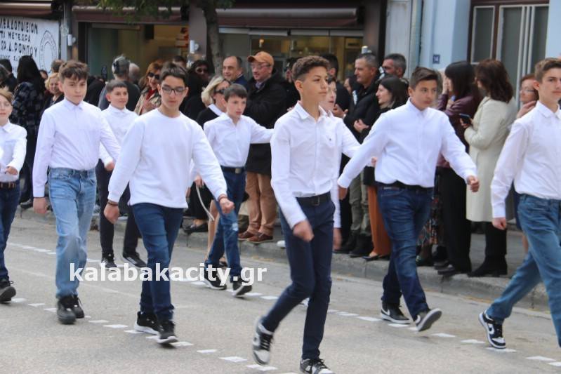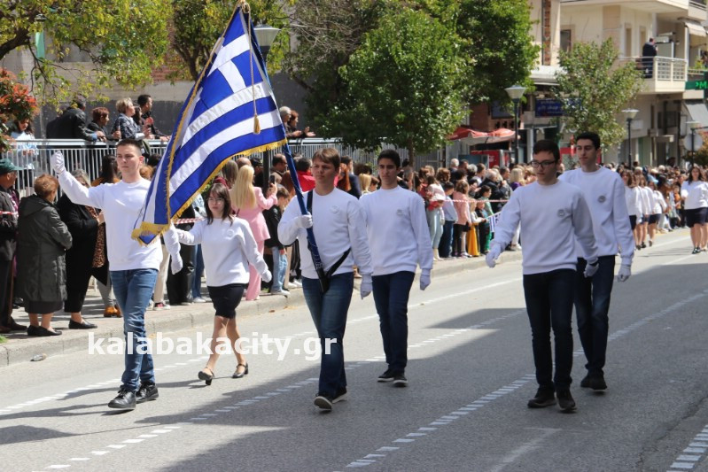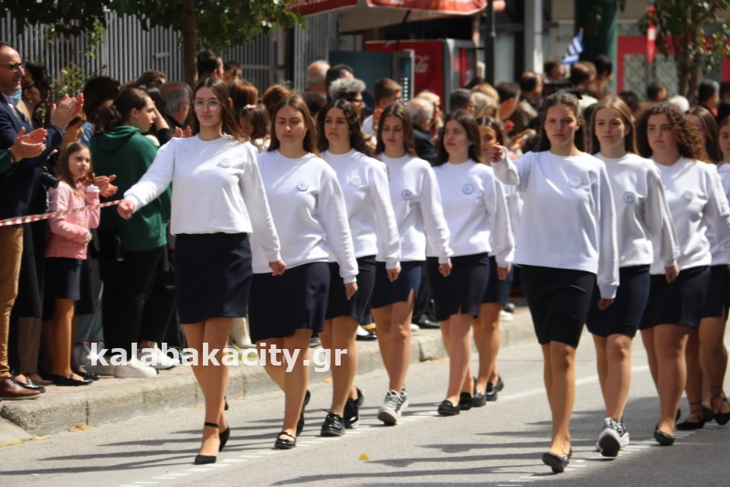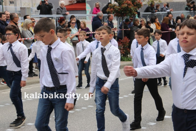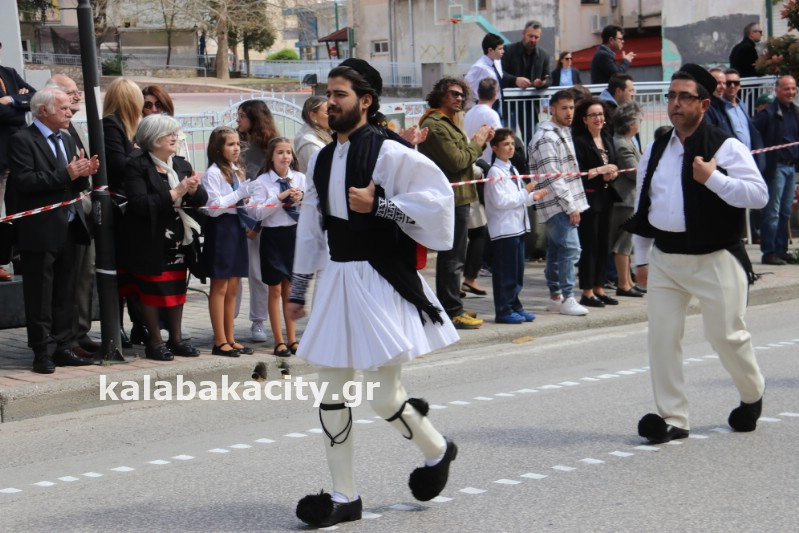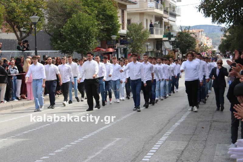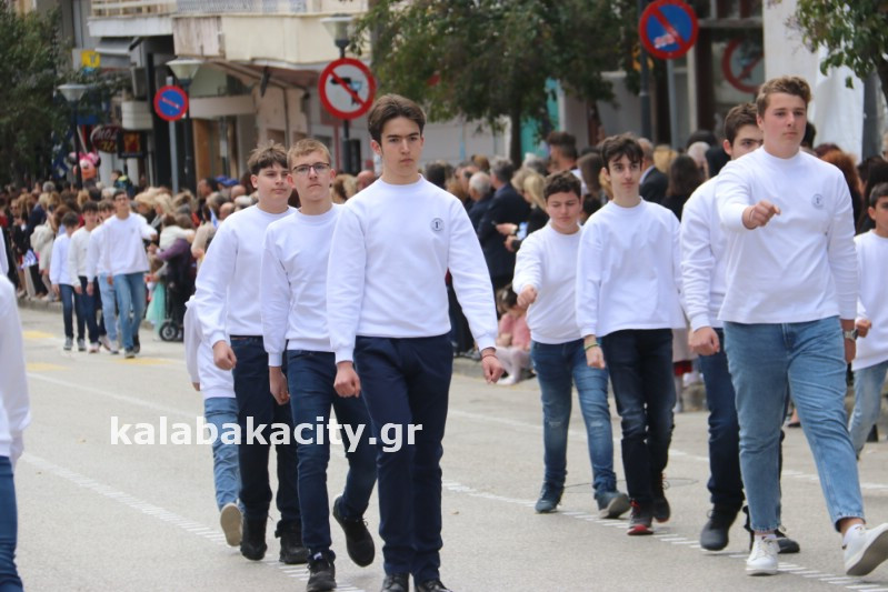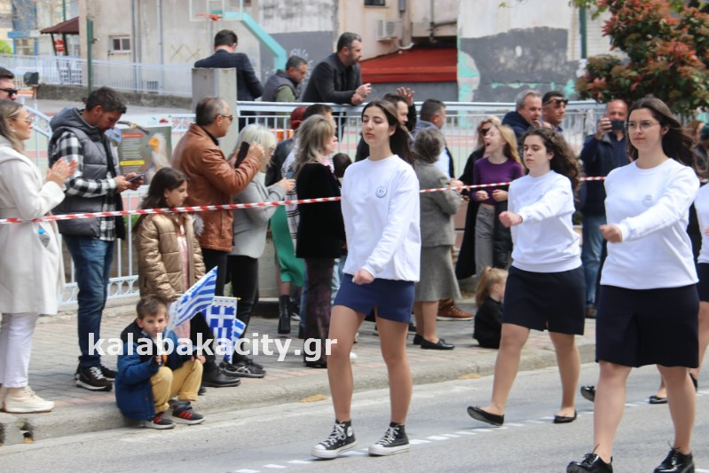 Η παρέλαση ξεκίνησε με την φιλαρμονική του Δήμου Μετεώρων και στην συνέχεια τα μαθητικά τμήματα, ο Οδηγισμός, ο Χορευτικός όμιλος Καλαμπάκας “ΜΕΤΕΩΡΑ”, η Αστυνομία και η Π.Υ Καλαμπάκας πέρασαν από την οδό Τρικάλων της πόλης τιμώντας την Εθνική μας Επέτειο.