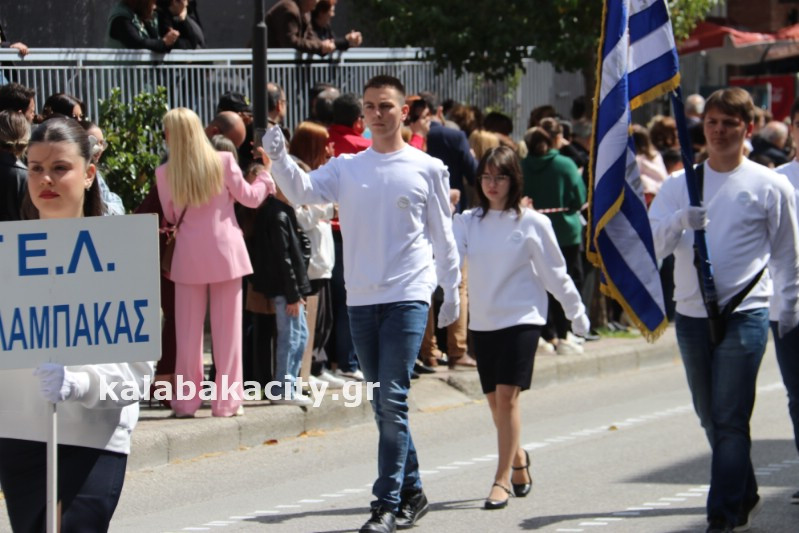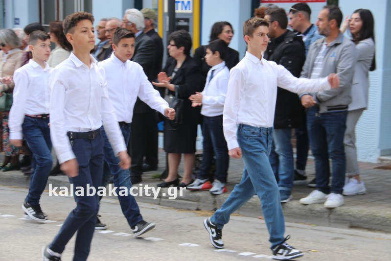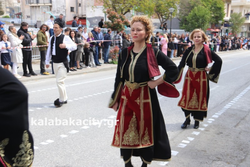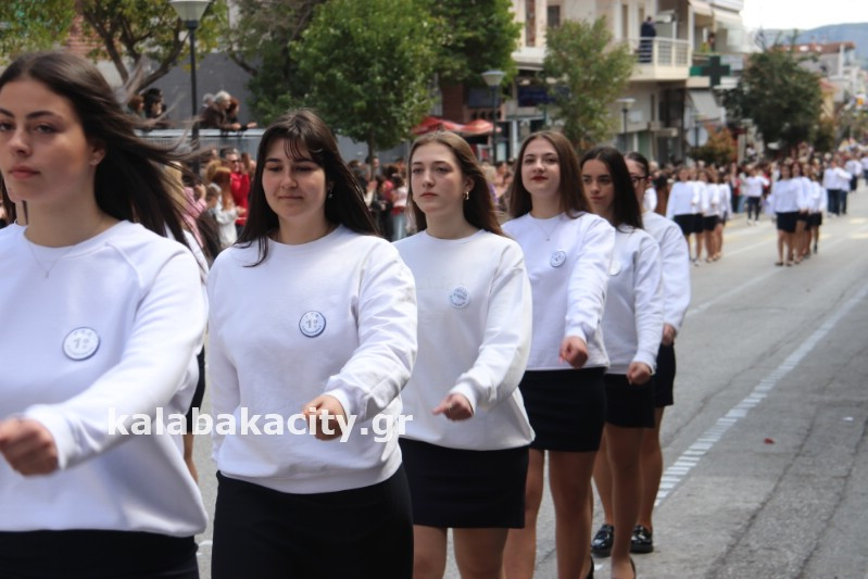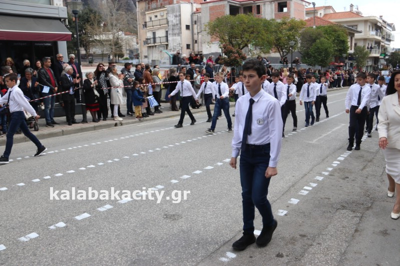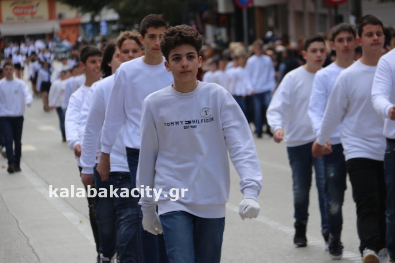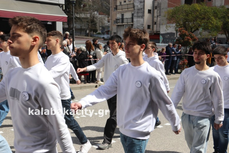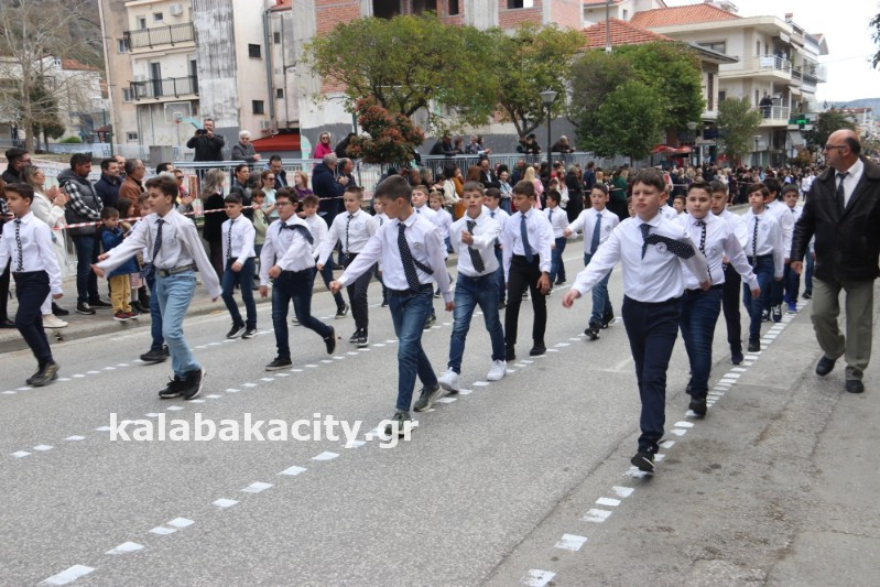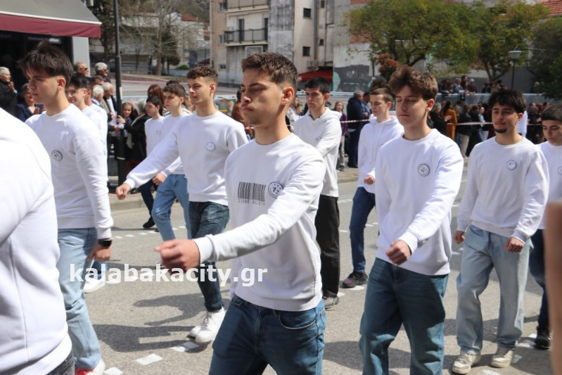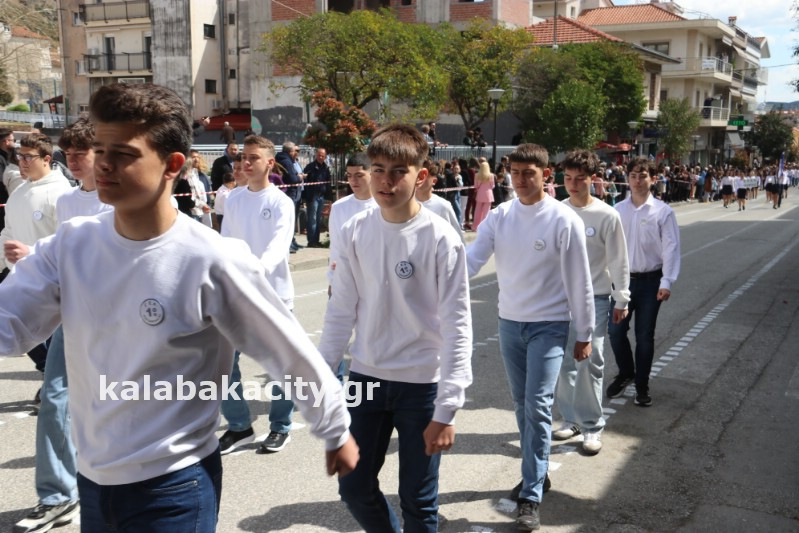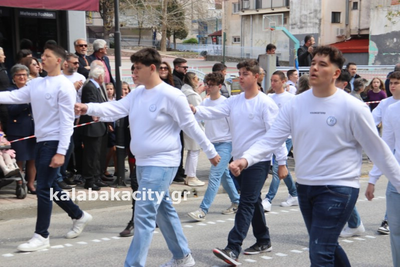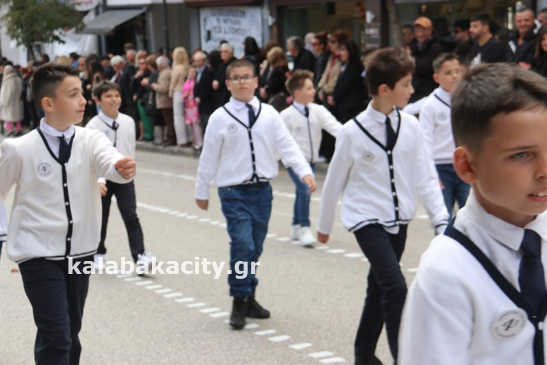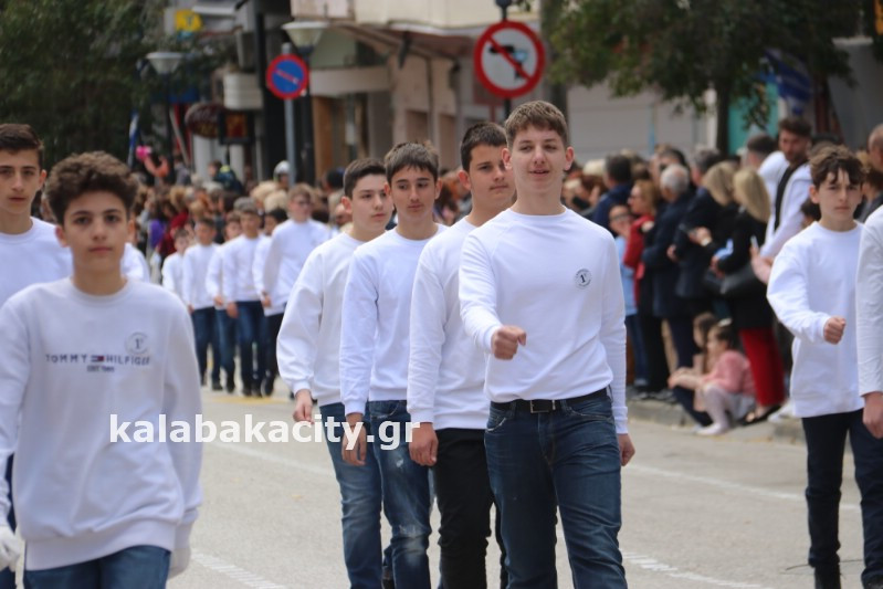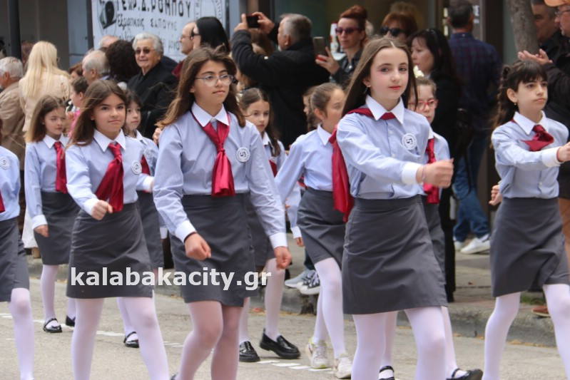 Η παρέλαση ξεκίνησε με την φιλαρμονική του Δήμου Μετεώρων και στην συνέχεια τα μαθητικά τμήματα, ο Οδηγισμός, ο Χορευτικός όμιλος Καλαμπάκας “ΜΕΤΕΩΡΑ”, η Αστυνομία και η Π.Υ Καλαμπάκας πέρασαν από την οδό Τρικάλων της πόλης τιμώντας την Εθνική μας Επέτειο.