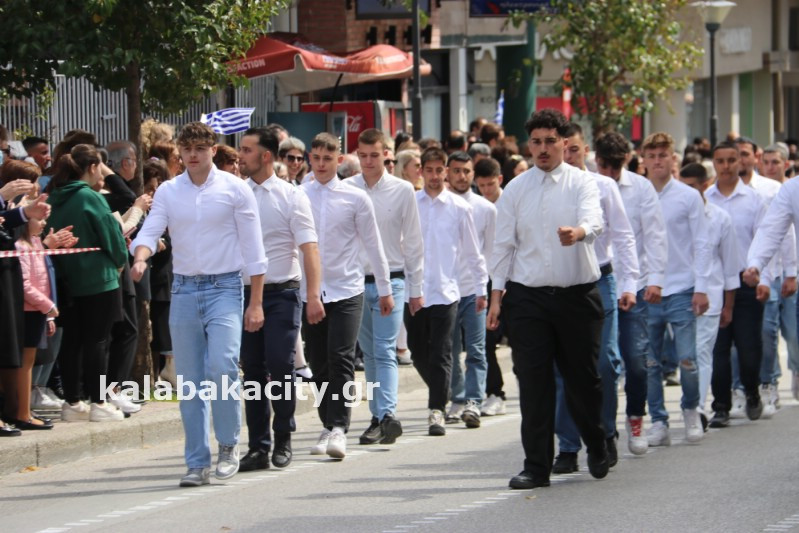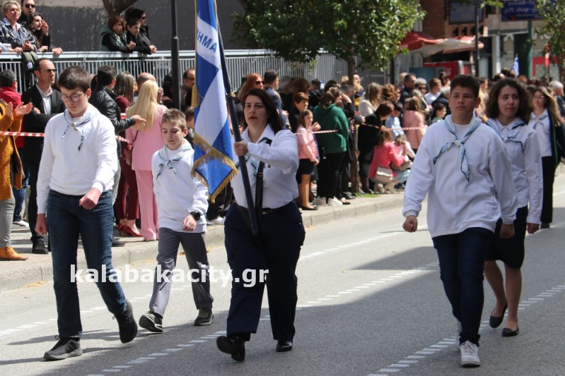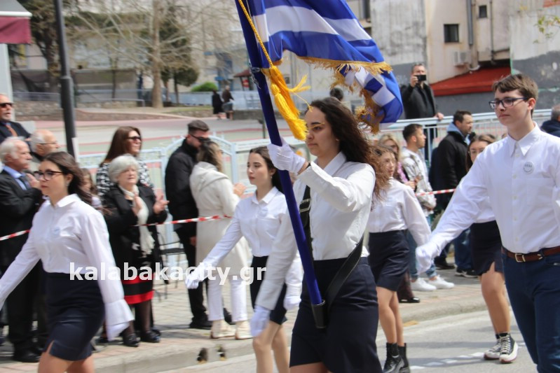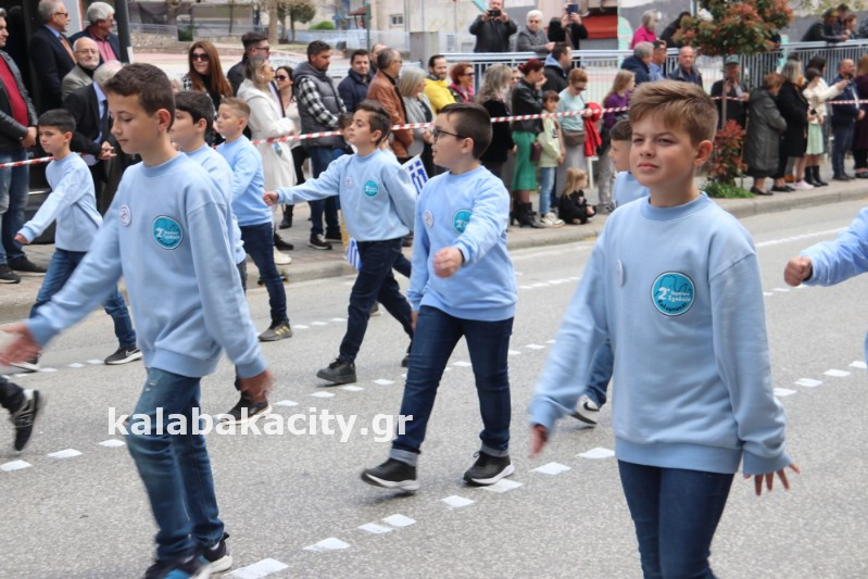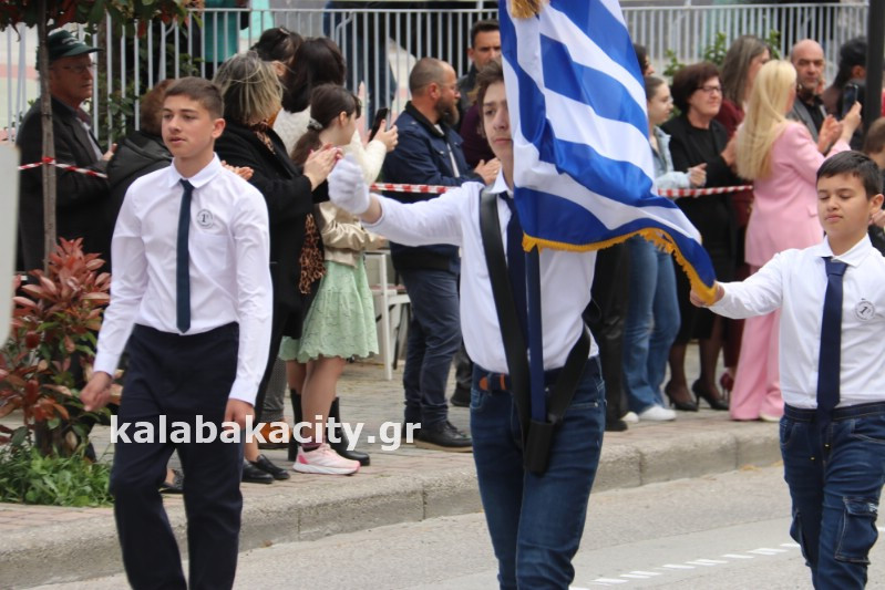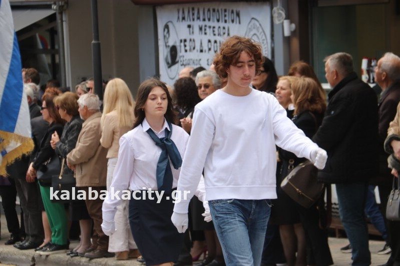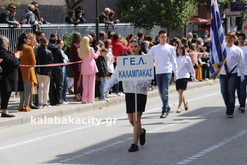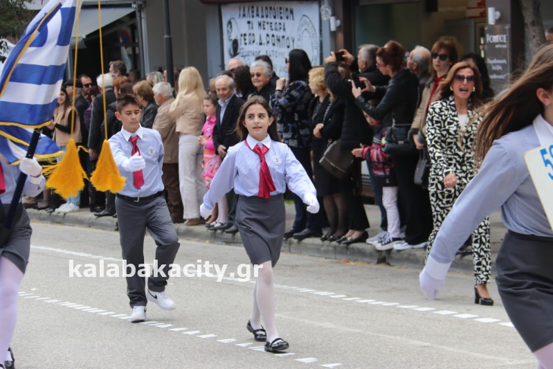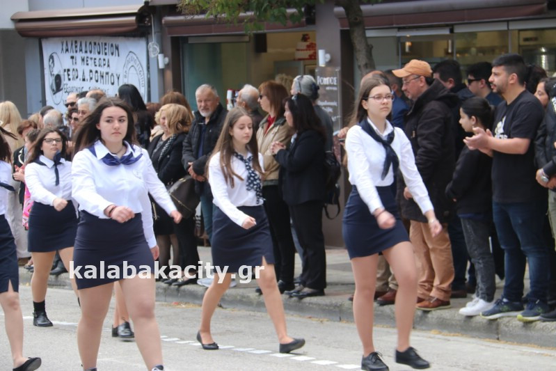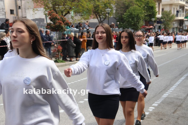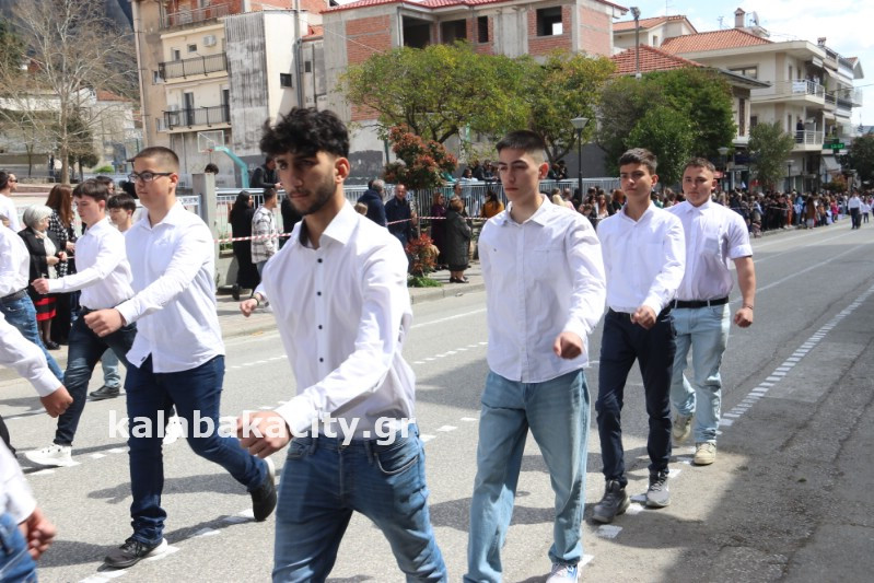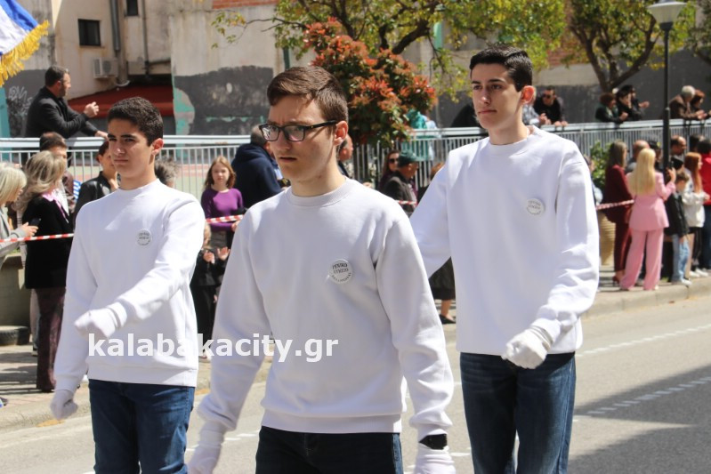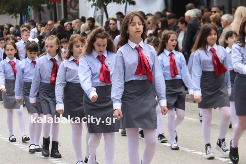 Η παρέλαση ξεκίνησε με την φιλαρμονική του Δήμου Μετεώρων και στην συνέχεια τα μαθητικά τμήματα, ο Οδηγισμός, ο Χορευτικός όμιλος Καλαμπάκας “ΜΕΤΕΩΡΑ”, η Αστυνομία και η Π.Υ Καλαμπάκας πέρασαν από την οδό Τρικάλων της πόλης τιμώντας την Εθνική μας Επέτειο.