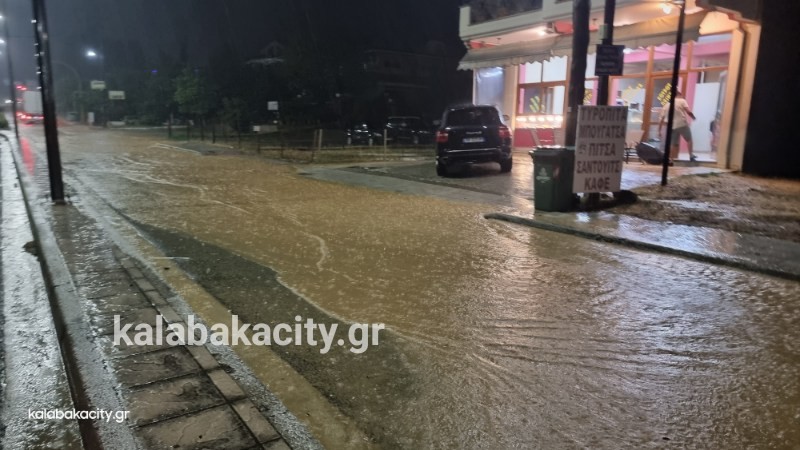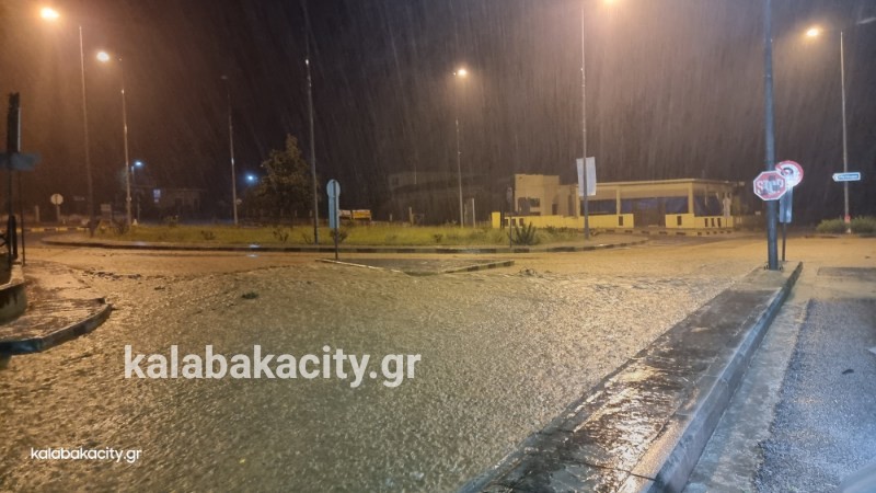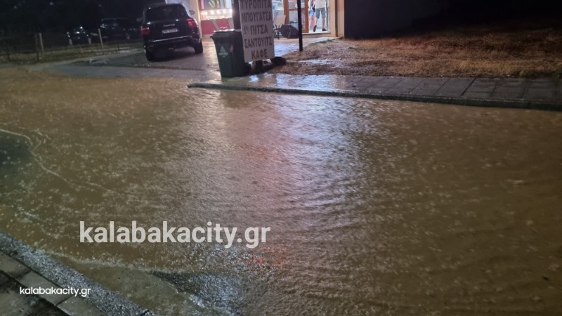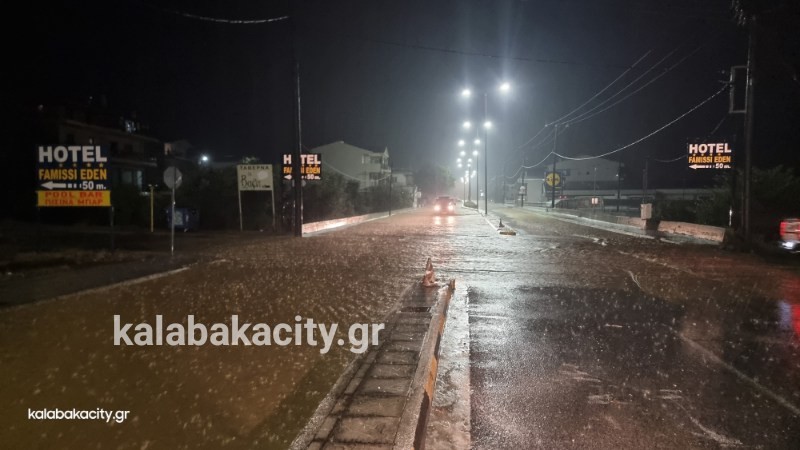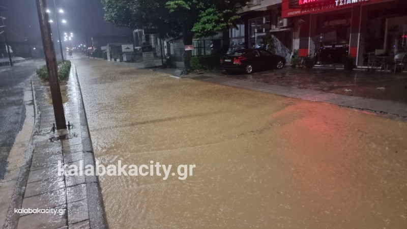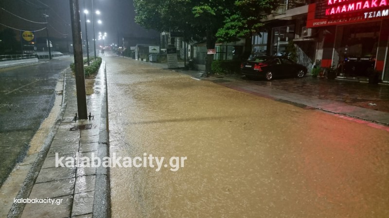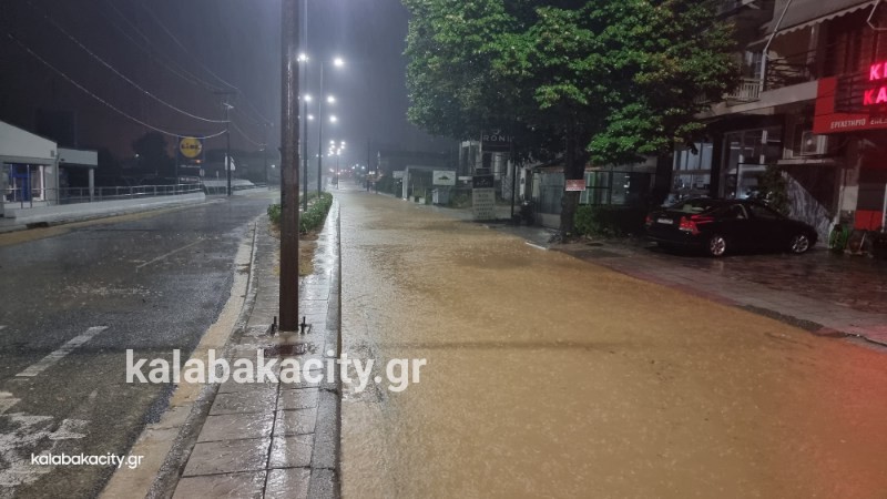 Απίστευτη ποσότητα νερού έχει συγκεντρωθεί στην οδό Τρικάλων στην είσοδο της πόλης.
