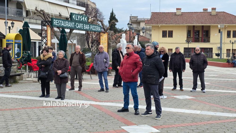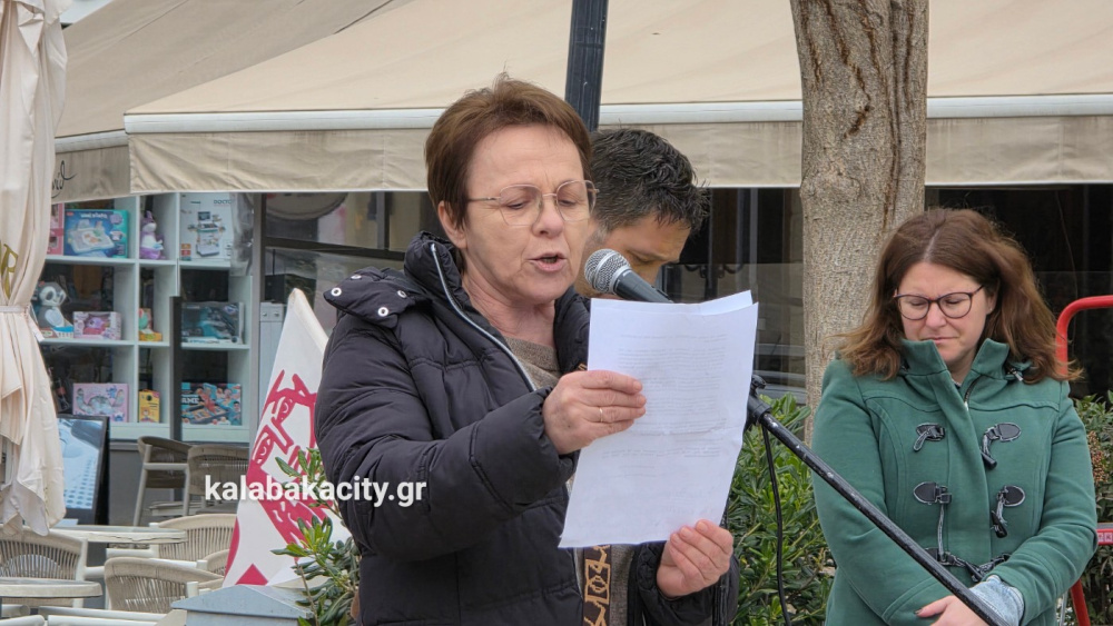 Η συγκέντρωση έγινε στην πλατεία Ρήγα Φεραίου Καλαμπάκας για το τραγικό σιδηροδρομικό δυστύχημα των Τεμπών και για τη “Βιολάντα”.