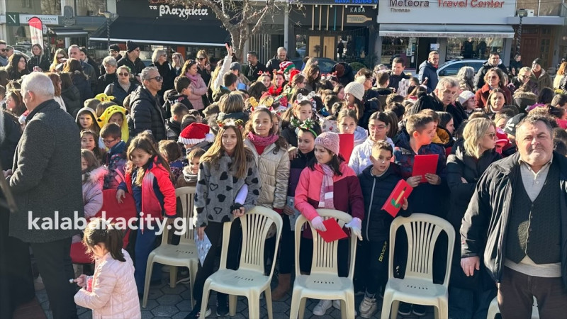 Μαθητές των Δημοτικών Σχολείων και Νηπιαγωγείων του Δήμου Μετεώρων και το Σωματείο Ιεροψαλτών Ν. Τρικάλων τραγούδησαν χριστουγεννιάτικους ύμνους, κάλαντα και τραγούδια με την συνοδεία των εκπαιδευτικών των σχολείων για να μας εισάγουν στην εορταστική ατμόσφαιρα των Αγίων Ημερών.
