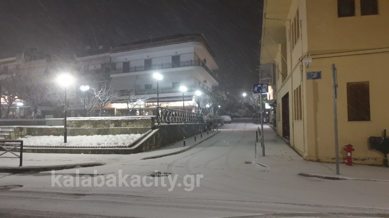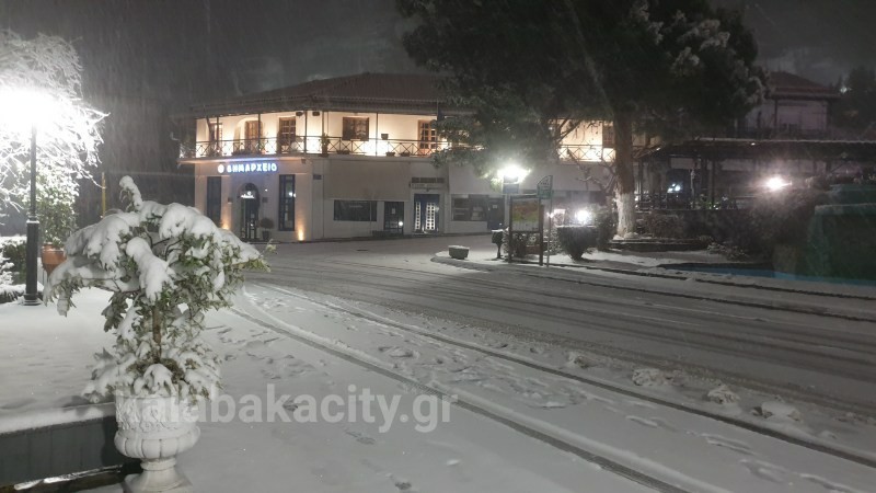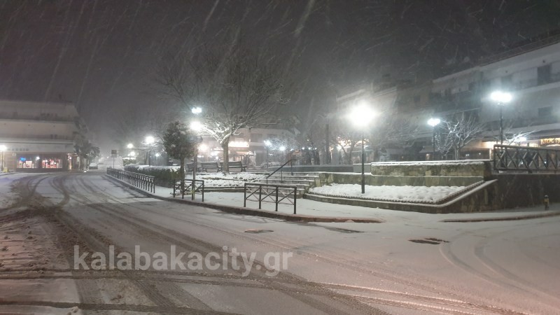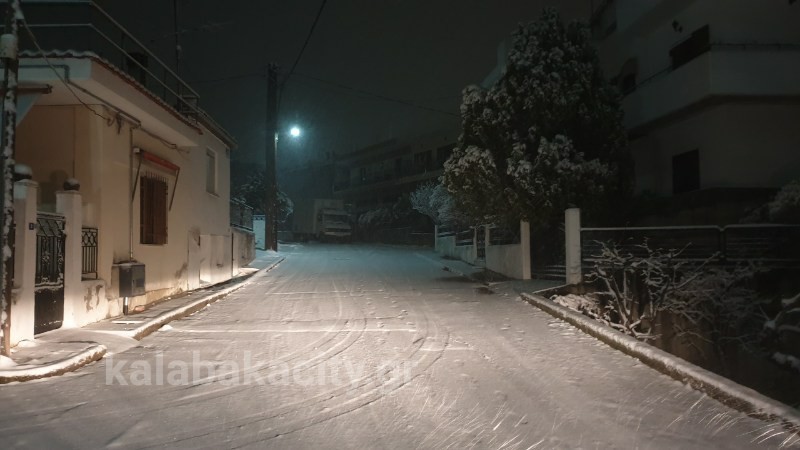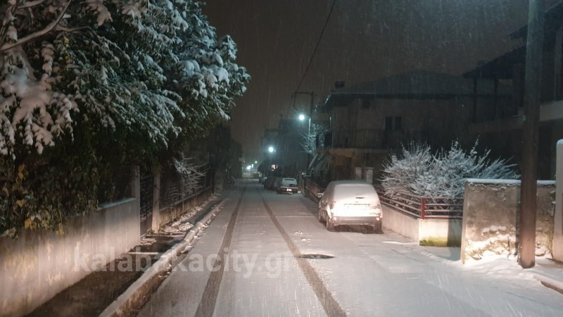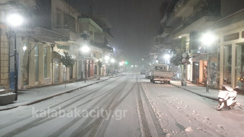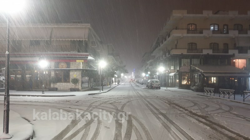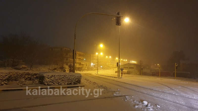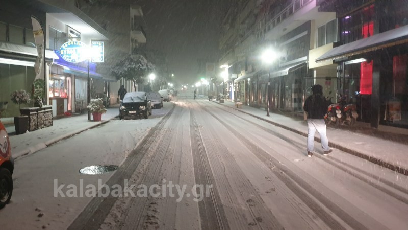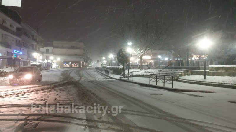 Σε απέραντο παγοδρόμιο μετατρέπονται οι δρόμοι της Καλαμπάκας απο την χιονόπτωση και την χαμηλή θερμοκρασία.