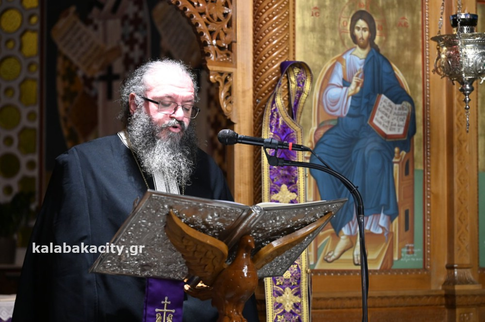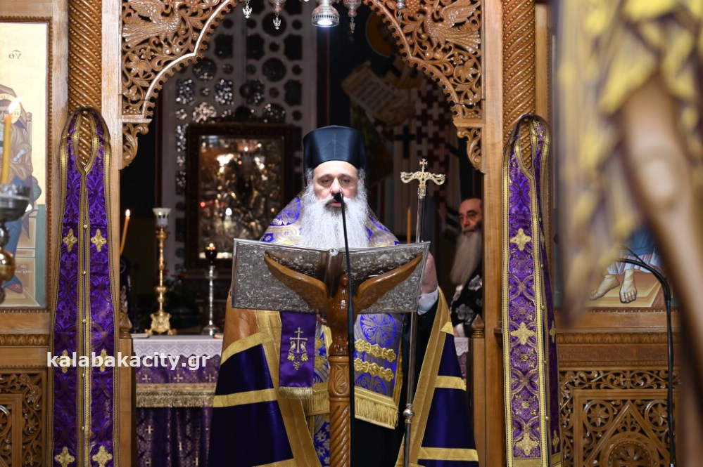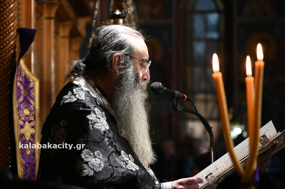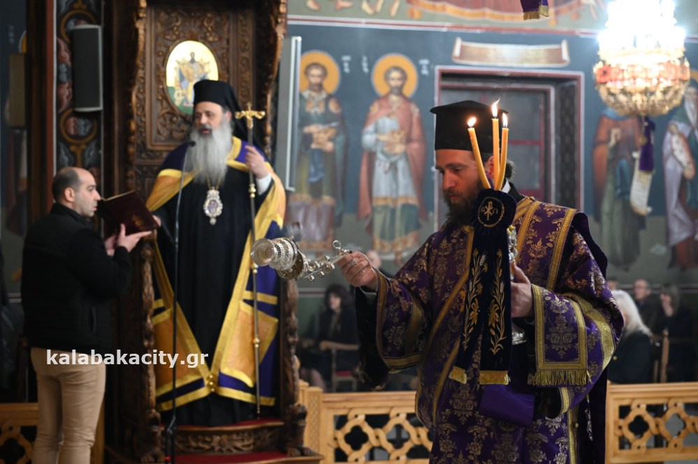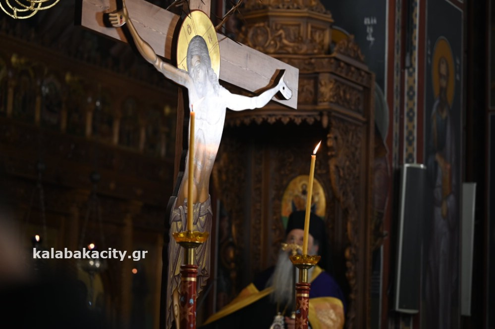 Σε κλίμα κατάνυξης τελέστηκε η Ακολουθία των Παθών το απόγευμα της Μεγάλης Πέμπτης, 17 Απριλίου, στον Ιερό Μητροπολιτικό Ναό του Αγίου Βησσαρίωνος Καλαμπάκας παρουσία πλήθους πιστών και εκπροσώπων της πολιτικής και αυτοδιοικητικής ζωής.