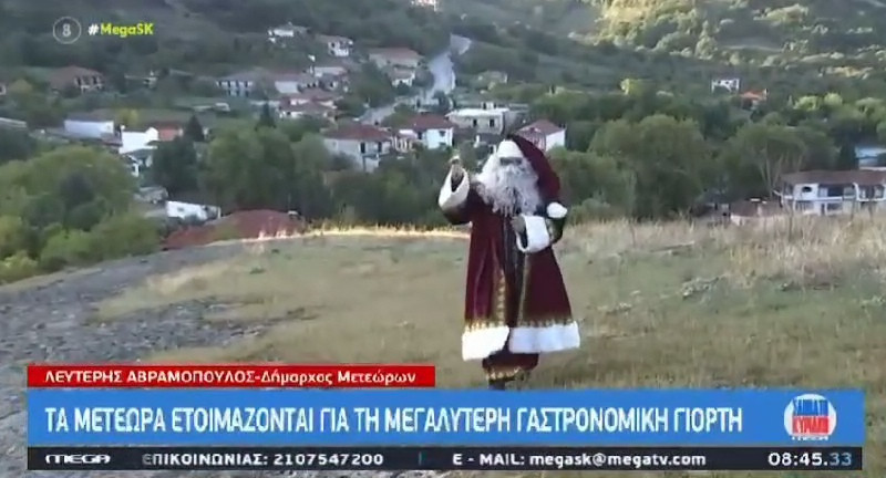 Ο Άγιος Βασίλης… εμφανίστηκε στην συνέντευξη του Δημάρχου κ. Αβραμόπουλου σε τηλεοπτική εκπομπή σχετικά με την γιορτή τρούφας… προκαλωντας ενα μικρό σοκ… δίνοντας ομως καιωτο μήνυμα για τα Χριστούγεννα που έρχονται ότι ο Δήμος Μετεώρων και πάλι θα είναι έτοιμος για τους επισκέπτες!