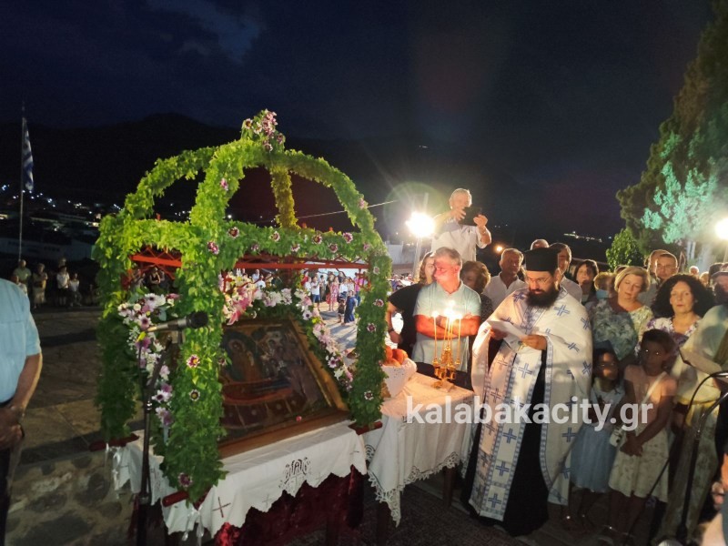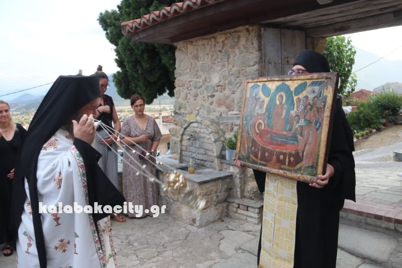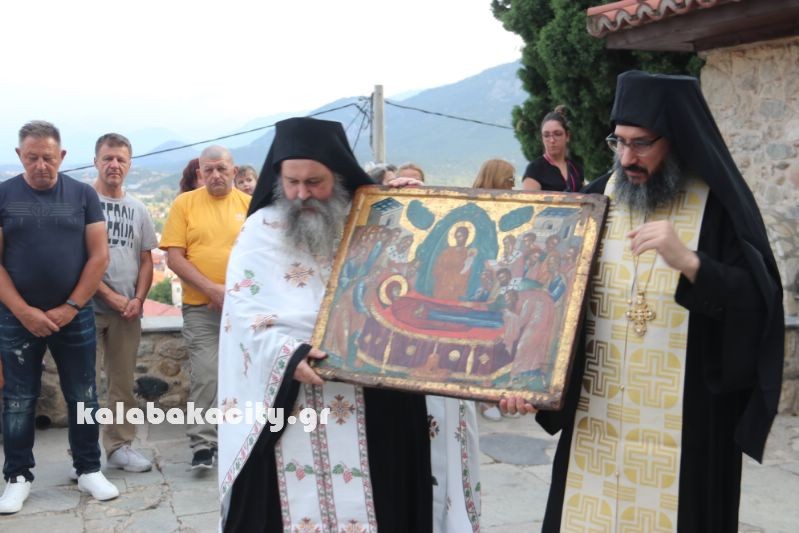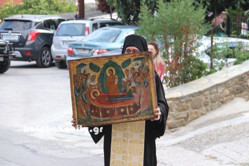 Στον Ιερό Ναό Κοιμήσεως της Θεοτόκου έγινε σήμερα το απόγευμα στις 19:15 η υποδοχή της Ιεράς Εικόνας της κοιμήσεως που φυλάσσεται στην Ι.Μ Βαρλαάμ Μετεώρων.