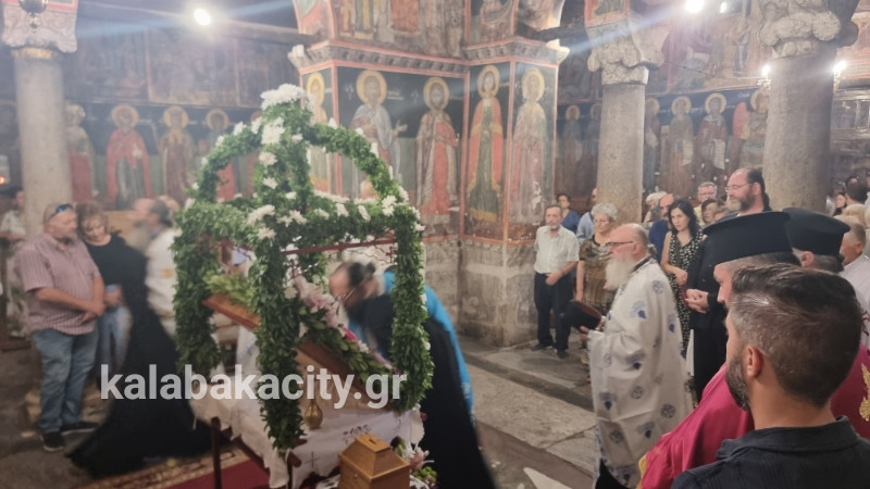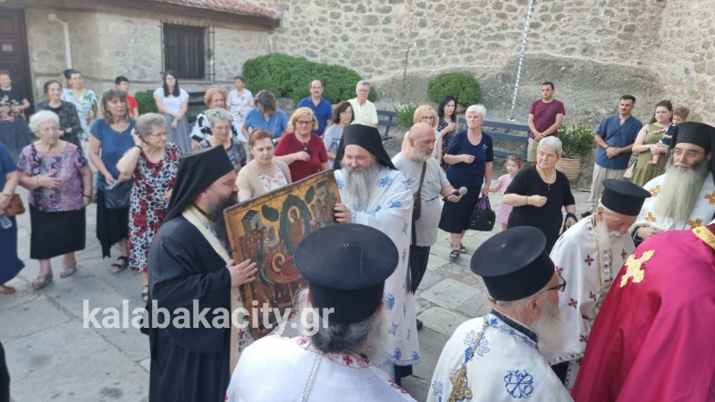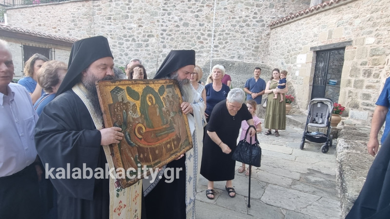 Στον Ιερό Ναό Κοιμήσεως της Θεοτόκου έγινε σήμερα το απόγευμα στις 19:15 η υποδοχή της Ιεράς Εικόνας της κοιμήσεως που φυλάσσεται στην Ι.Μ Βαρλαάμ Μετεώρων.