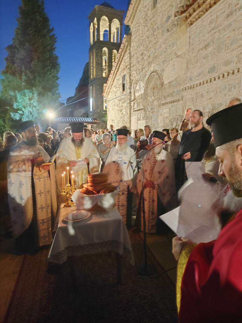 Σύμφωνα με το πρόγραμμα γίνεται η ακολουθία Πανηγυρικού Εσπερινού μετά των Εγκωμίων της Υπεραγίας Θεοτόκου, αρτοκλασίας και θείου κηρύγματος υπό του Πανοσιολογιωτάτου Αρχιμανδρίτου Χρυσοστόμου αγιορείτου.