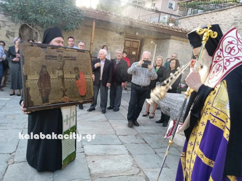 Στον Ιερό Ναό Κοιμήσεως της Θεοτόκου μεταφέρθηκε το απόγευμα του Σαββάτου η Ιερά Εικόνα της Σταυρώσεως του Χριστού (η μία όψη της αρχαίας αμφίπλευρης) η οποία φυλάσσεται στην Ιερά Μονή Βαρλαάμ.