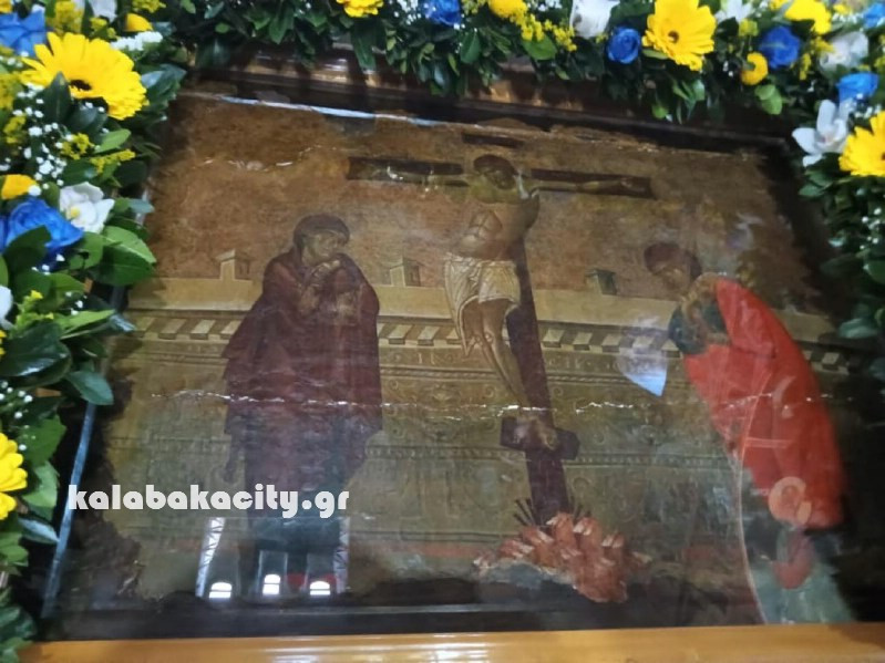 Καλαμπάκα: Στον Ι.Ν Κοιμήσεως της Θεοτόκου η Ιερά Εικόνα της Σταυρώσεως του Χριστού από την Ι. Μ. Βαρλαάμ