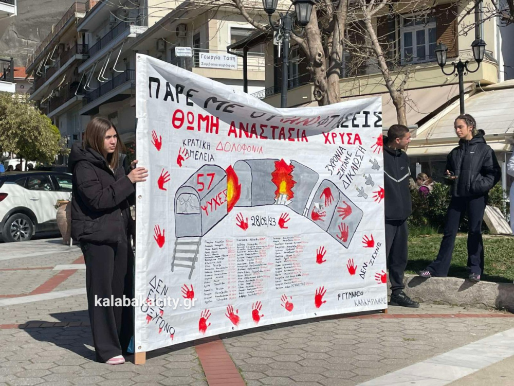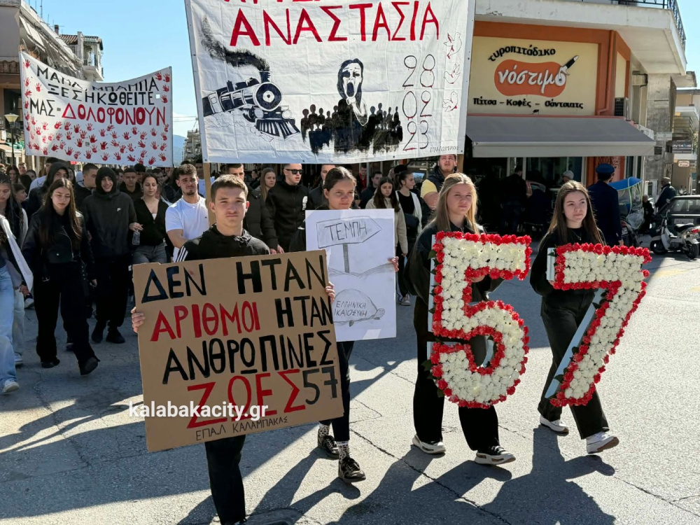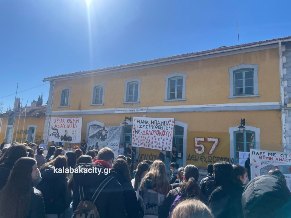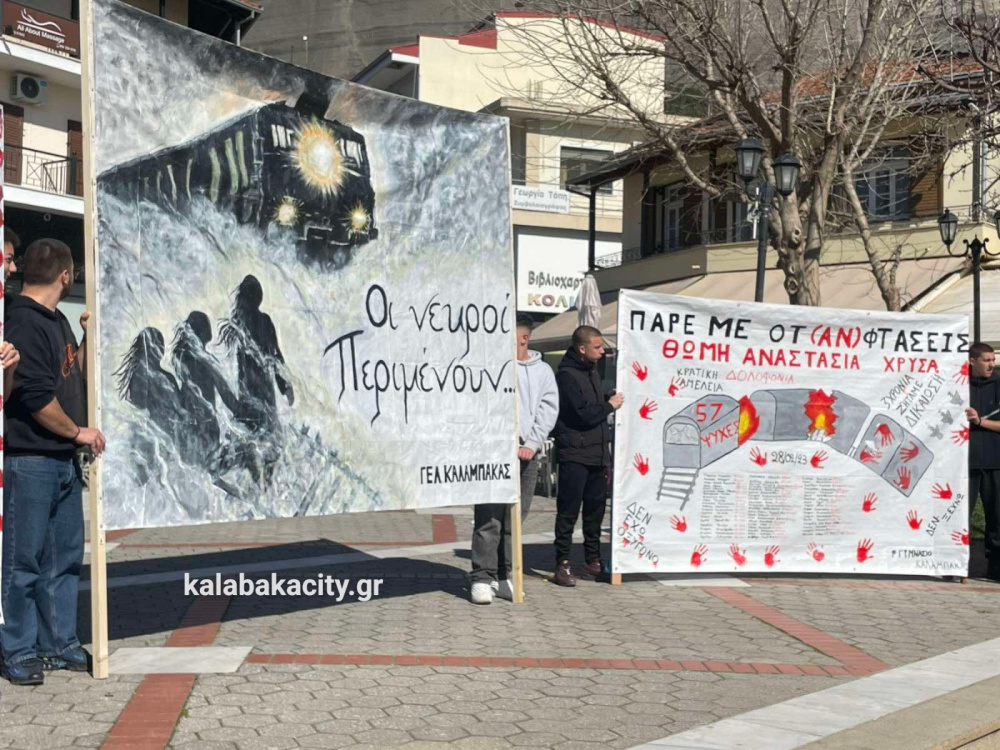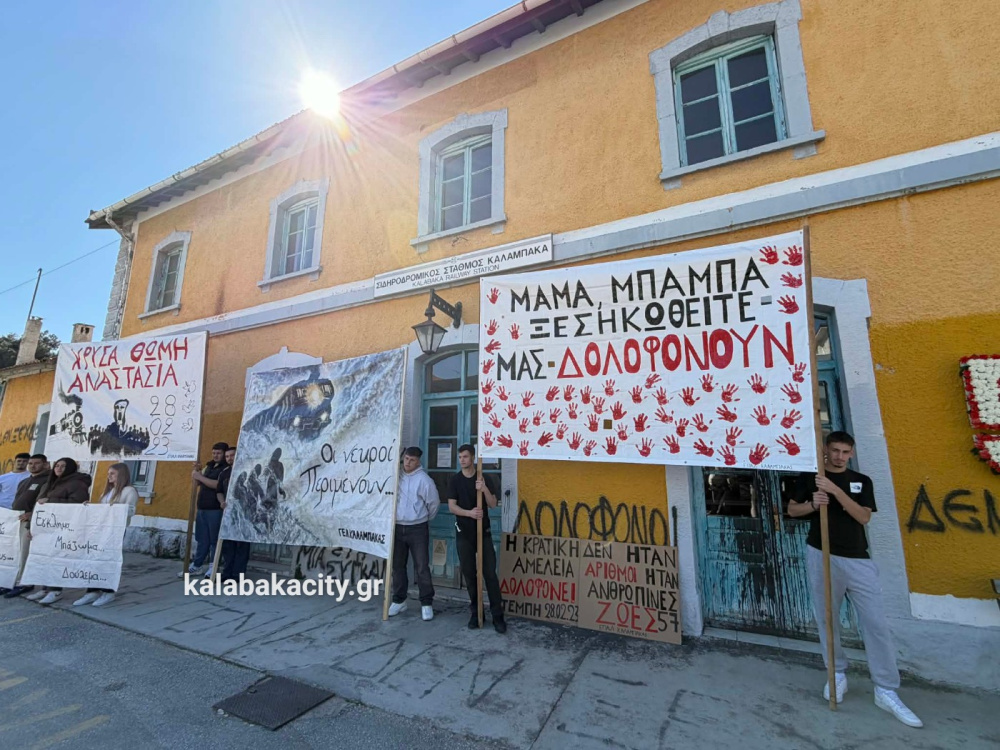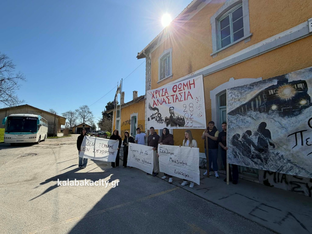 Στη συνέχεια οι μαθητές πραγματοποίησαν πορεία προς τον Σιδηροδρομικό Σταθμό Καλαμπάκας (ΟΣΕ), όπου συνέχισαν να εκφράζουν την οδύνη αλλά και την απαίτησή τους να μην ξεχαστούν τα θύματα της τραγωδίας και να αποδοθεί δικαιοσύνη. Με τη δυναμική τους παρουσία έστειλαν το μήνυμα ότι η μνήμη των ανθρώπων που χάθηκαν θα παραμείνει ζωντανή και ότι η νέα γενιά δεν θα σταματήσει να ζητά δικαιοσύνη.